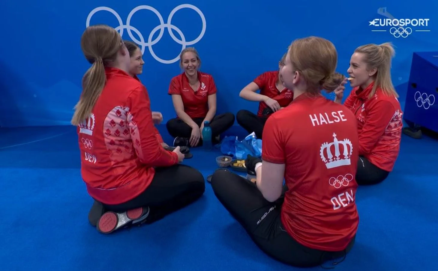 Первая половина матча прошла ровно. Смотрите, как девушки из Дании чиллили в перерыве: прямо на полу, в кружке и со снеками