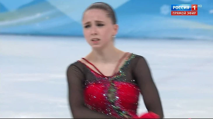 Камила Валиева дважды упала в произвольной программе и занял 4 место в личном турнире на Олимпиаде. Первое место у Анны Щербаковой.