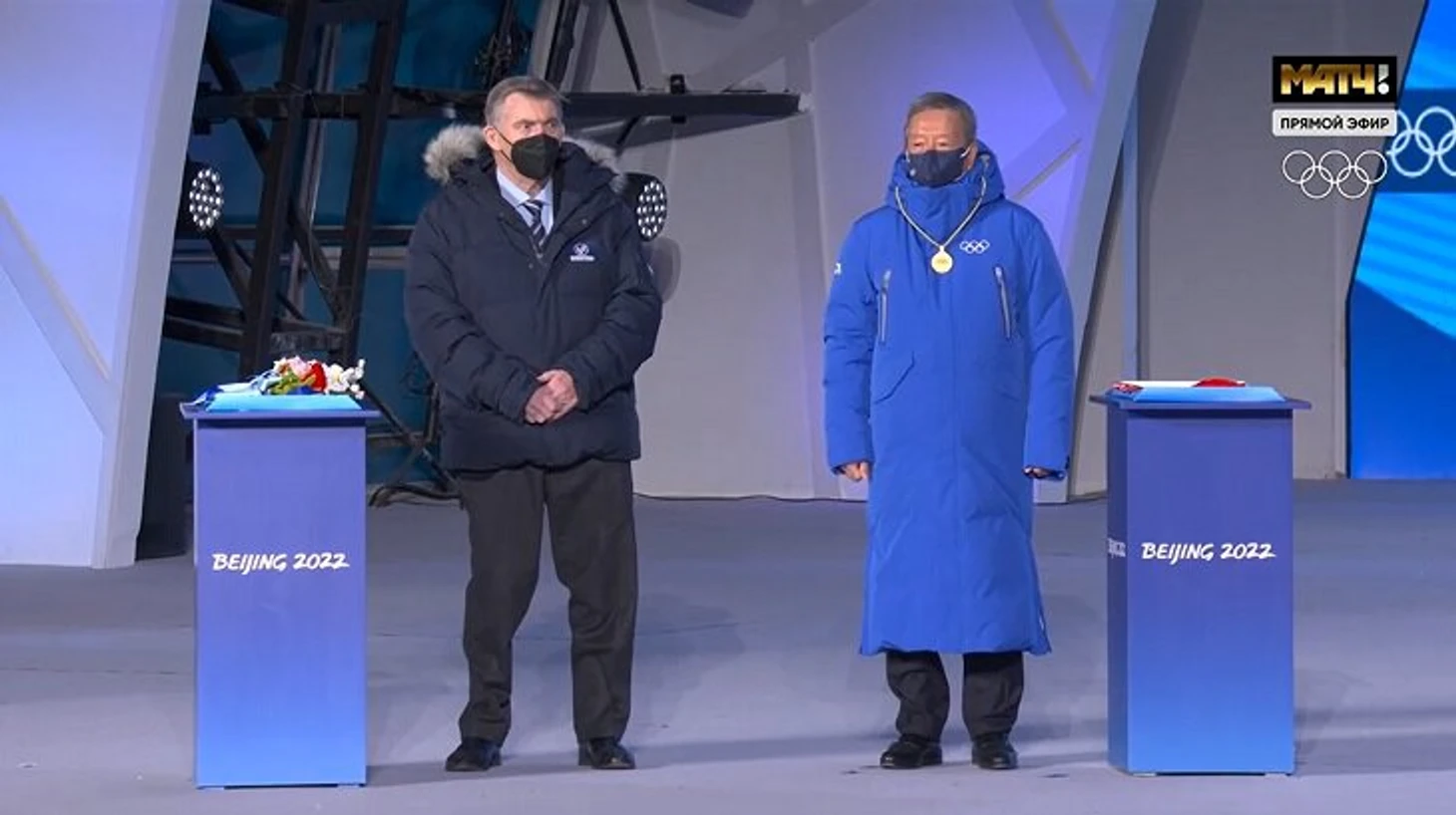 Медали выносил вице-президент МОК Нг Сер Мианг, цветы – глава ISU Ян Дайкема.