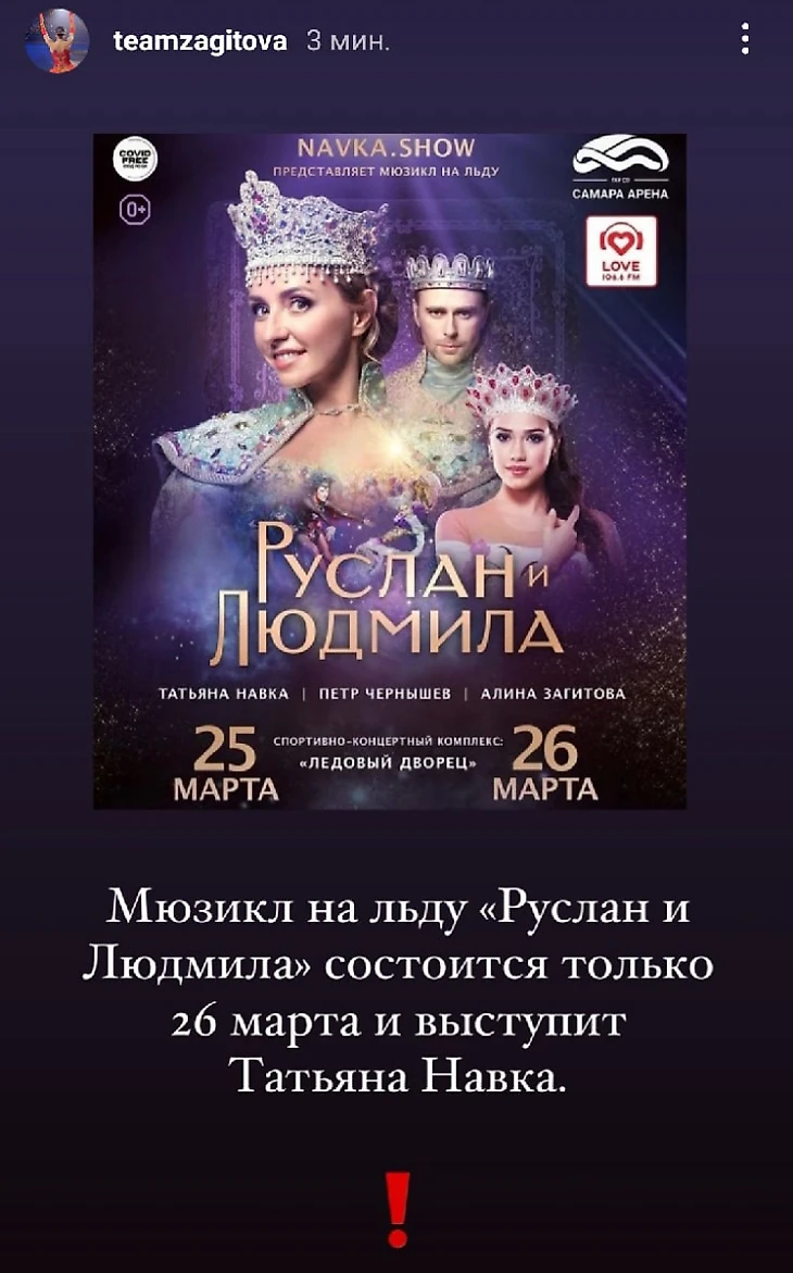 Уважаемые друзья, сегодня Алина Загитова в своих сторис и в посте Инстаграмма сообщила свои ссылки на аккаунты в телеграмме и в ВК по причине возможной скорой блокировки Инстаграма. Поэтому, не теряем её, ссылки я тоже размещу в этом посте чуть ниже. Подписывайтесь, кто этого ещё не сделал.