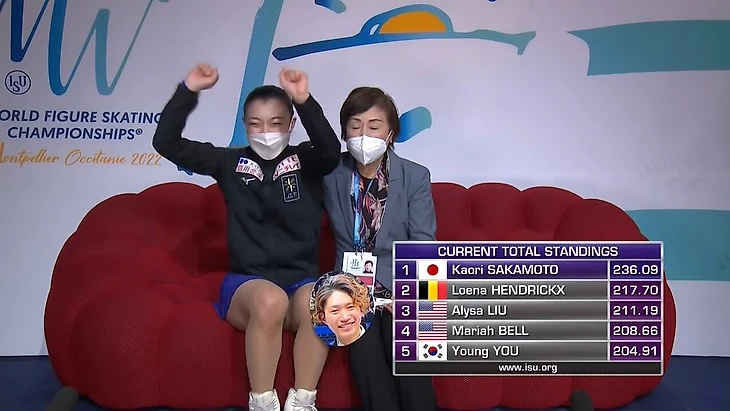 Вот и в произвольной на ЧМ подтвердила, что психология – ее сильная сторона. Сакамото выходила после проката жизни Луны Хендрикс – та выступала на кураже и принесла Бельгии первую в истории медаль в одиночном катании. Луна плакала от счастья в КиКе, а зал аплодировал ей, когда Каори уже выходила на лед.