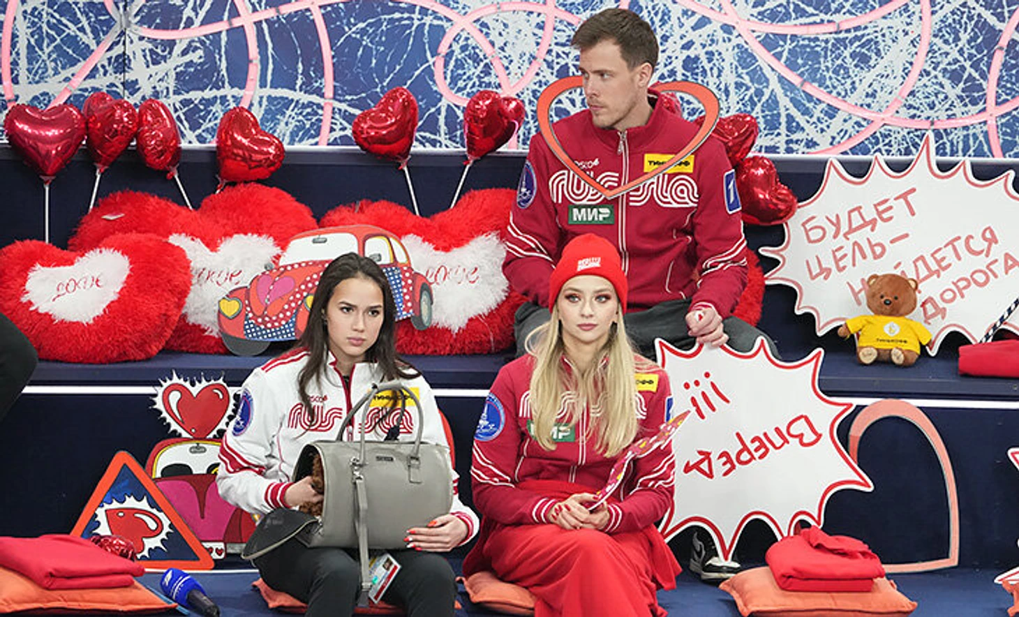Первый прокат Валиевой после Олимпиады: тепло обнялась с Тутберидзе и укрылась плакатом с Медведевой