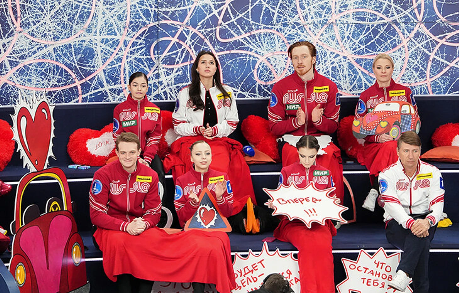 Уже сам факт переноса КПК на время ЧМ заставлял задуматься - ради кого и чего это все делается? Очень хорошая фотка с Валиевой получилась - точнее, надпись за ней на льду, ужавшаяся до "Кубок по фигу". Вот это и есть реальное отношение организаторов к КПК.