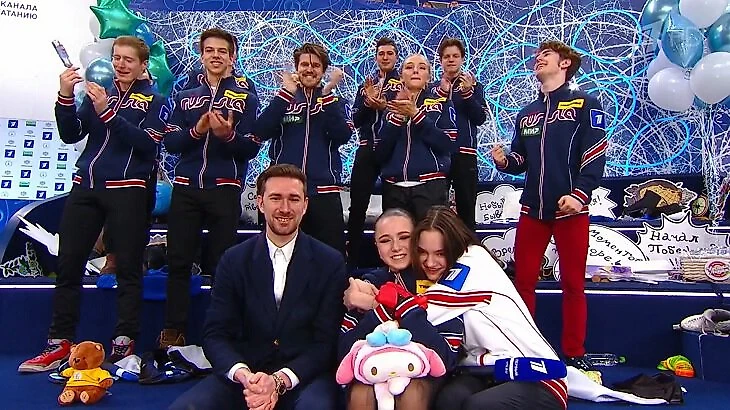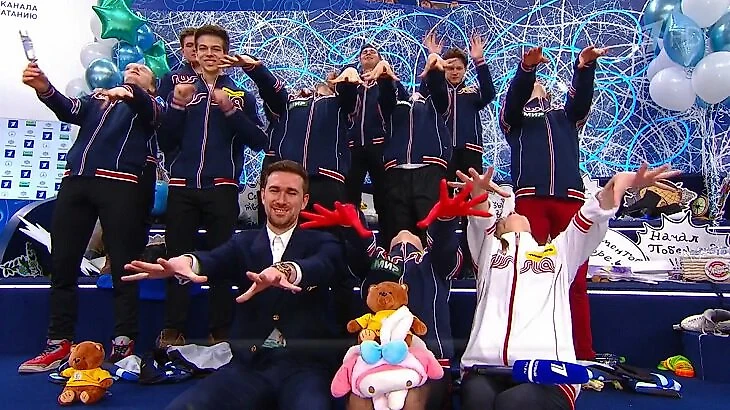 Вернулась та Валиева, которую мы видели весь сезон – веселая и непосредственная. В КиКе всей командой показали финальную позу программы.
