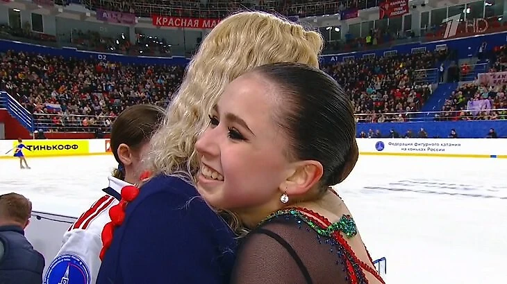 Несмотря на несложную (по меркам Валиевой) программу, судьи щедро оценили прокат: 173,88 балла. Всего на 11,41 меньше рекордного выступления на Гран-при России, хотя там были и тройной аксель, и три квада. А на Кубке Первого канала она прыгнула простой каскад тройной флип – двойной тулуп.