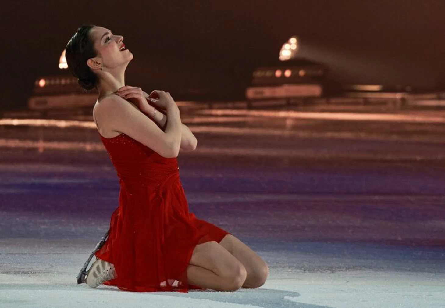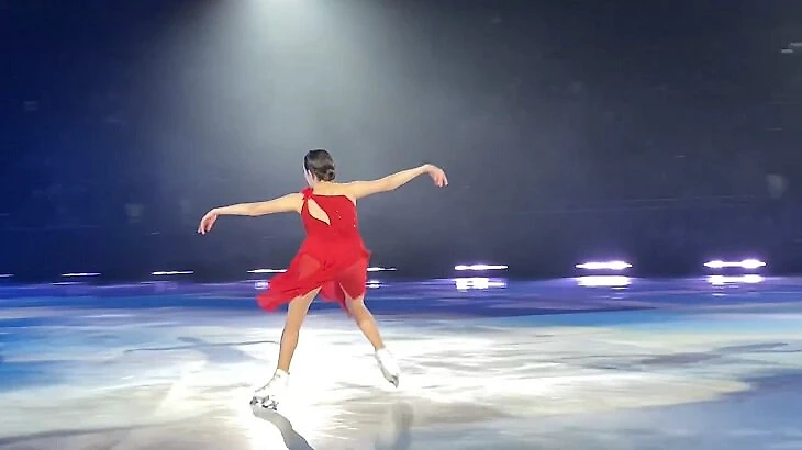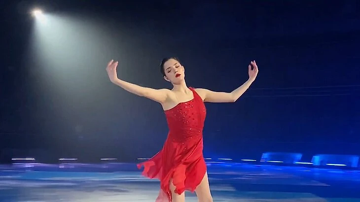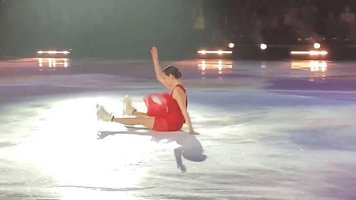 Новый номер Медведевой: каталась в красном платье и сорвала гидроблейд – ее падение Валиева и Кондратюк назвали искусством