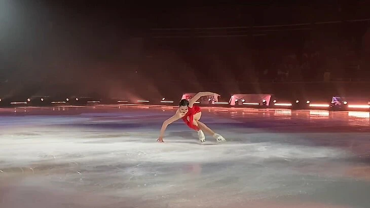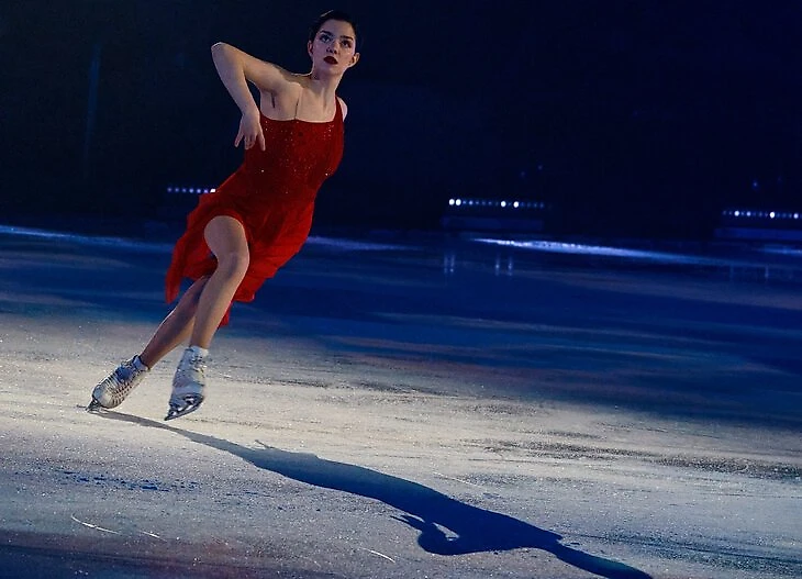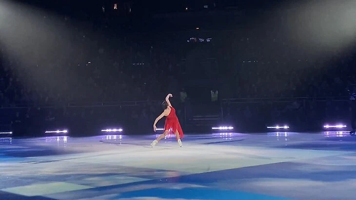 У Евгении Медведевой новый показательный номер: в гала-шоу «Ледникового периода» она вышла в красном платье под песню о любви.