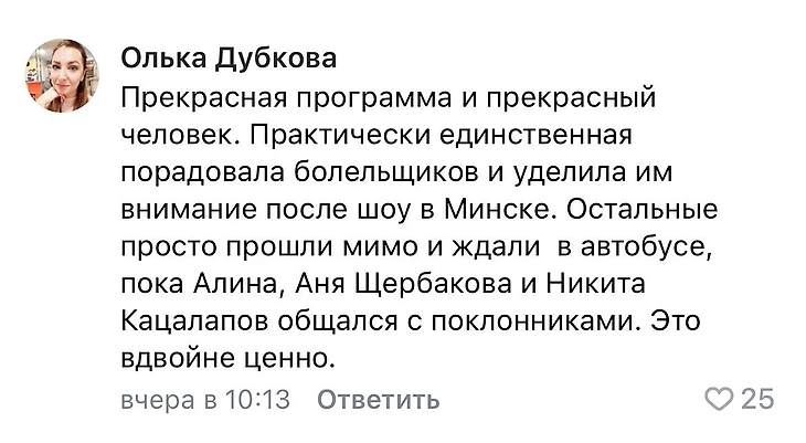 Алина нереальная, вот просто нереальная. Настоящий талант, самородок. Я до сих пор не могу поверить, что это был не сон. Ее просто нужно видеть вживую, потому что камера не передаёт и половины того, что она делает на льду.