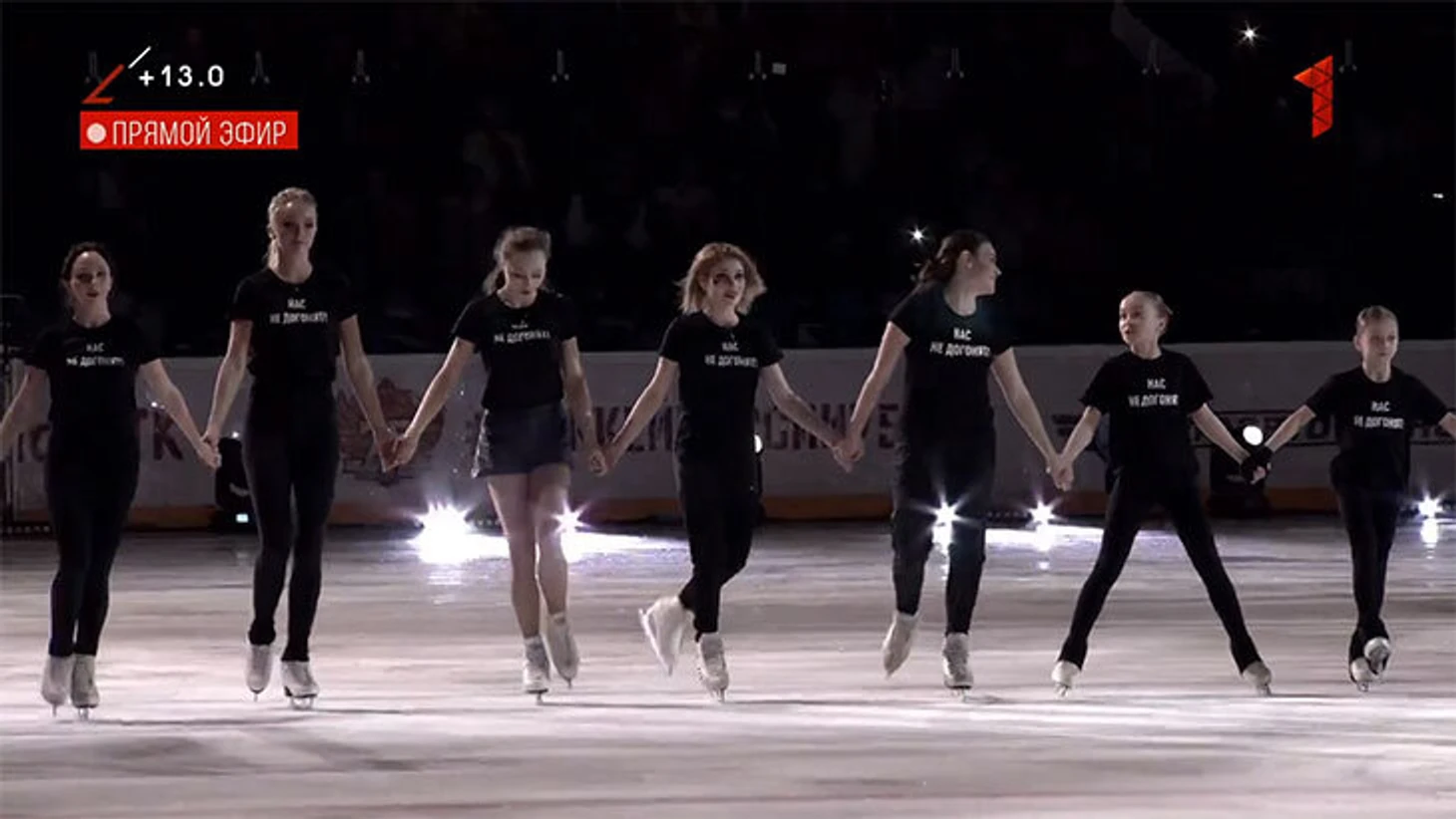 И еще двое ведущих (простите, без имен) несколько раз представили шоу как патриотическое. А вот уточнение от Рудковской: «Наш тур – поддержка наших спортсменов, которые были дисквалифицированы в связи с санкциями и не попали на чемпионат мира. Наше шоу – вне политики, мы за наших спортсменов».