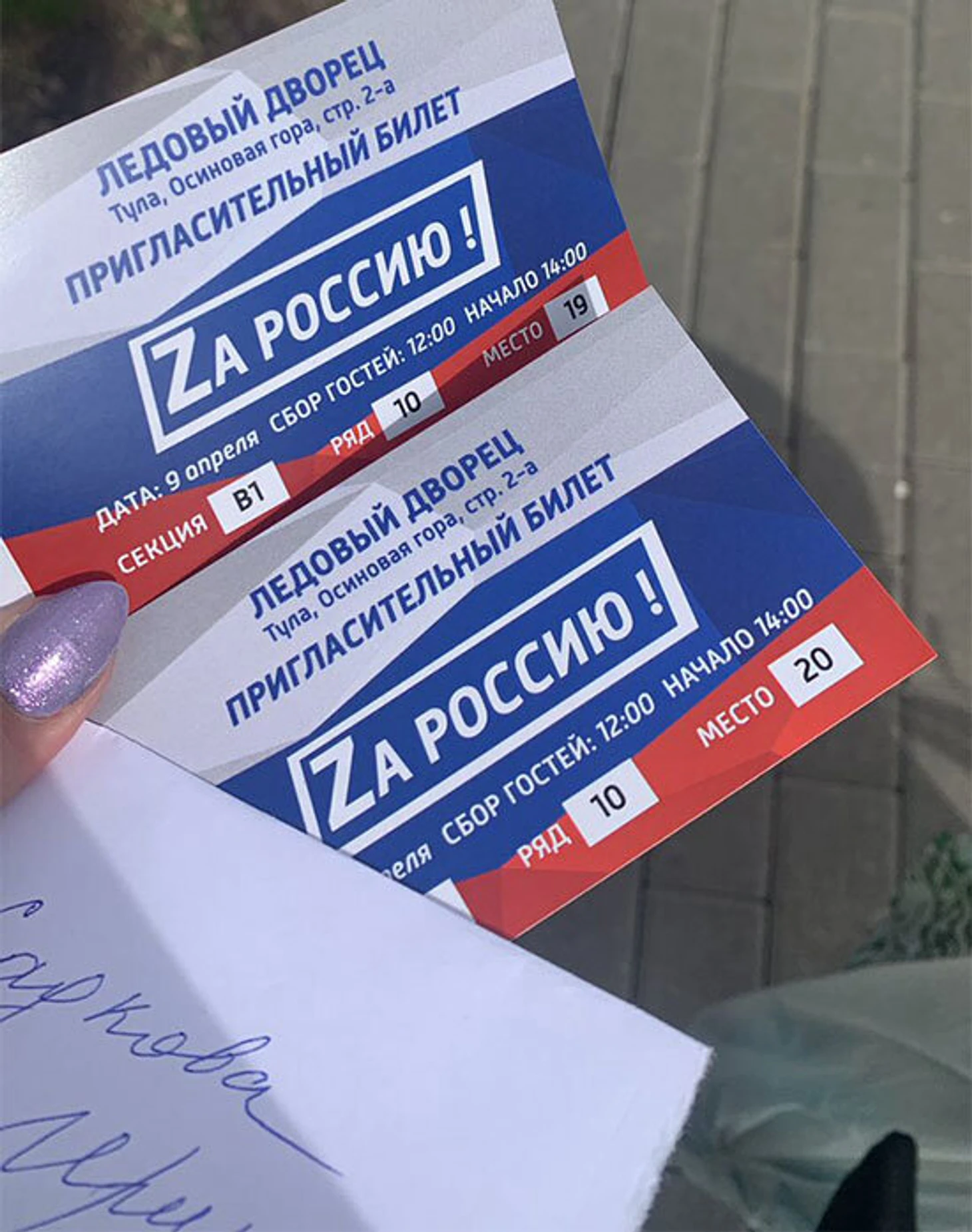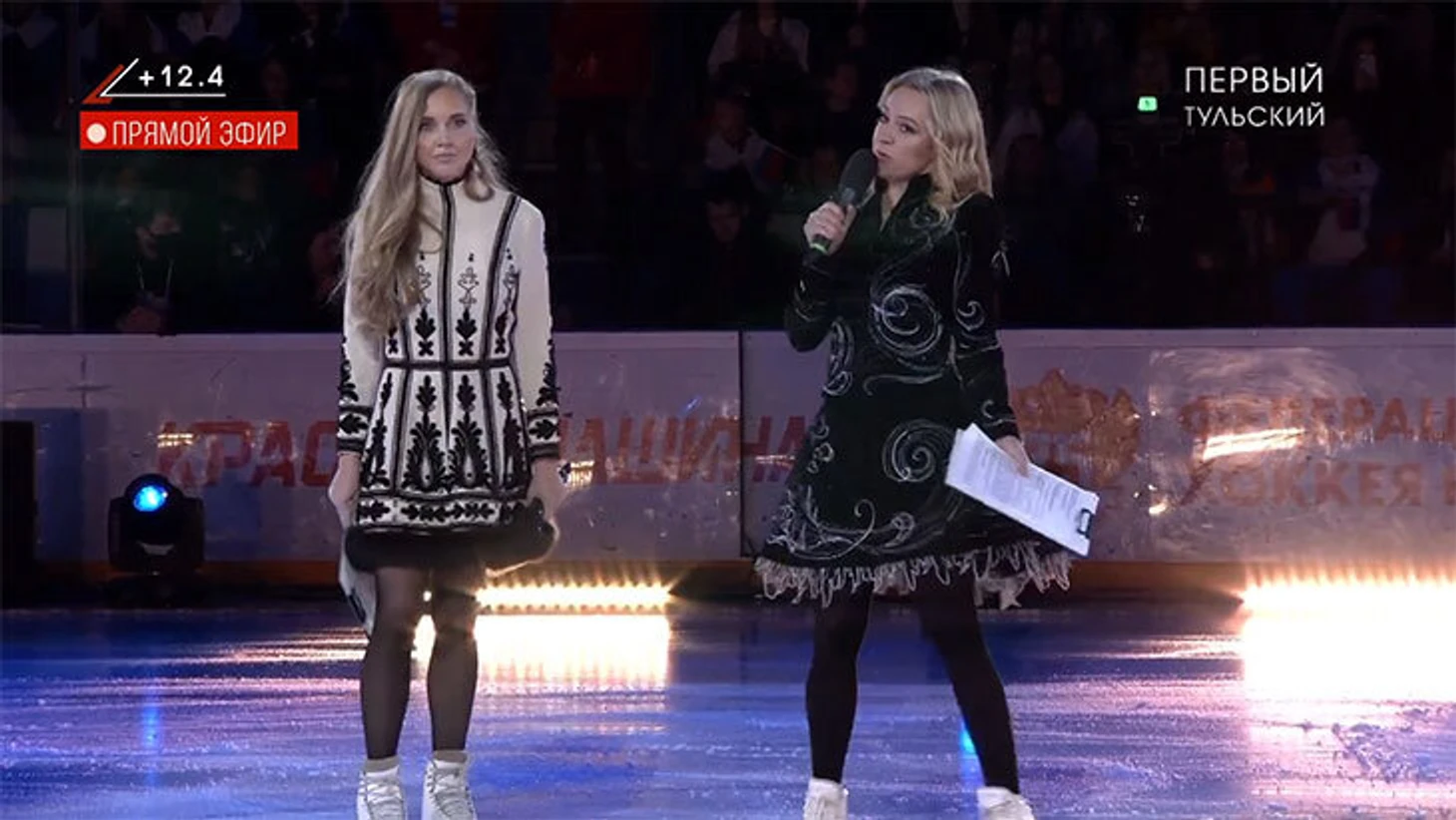 • В тульских СМИ это называли патриотическим проектом – говорят, билеты не продавались, в зале было 3000 зрителей. По информации телеканала «Первый Тульский», который и транслировал шоу, «при поддержке Правительства региона в ледовый дворец приглашены общественники, волонтеры, студенты, представители федерации фигурного катания».