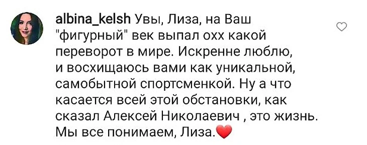 «Лиза, ну как так…» / «Обнимаю». Реакции болельщиков на пост Туктамышевой о шоу Плющенко