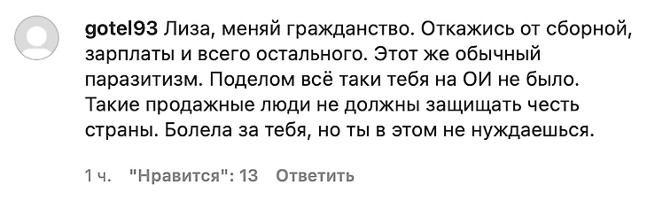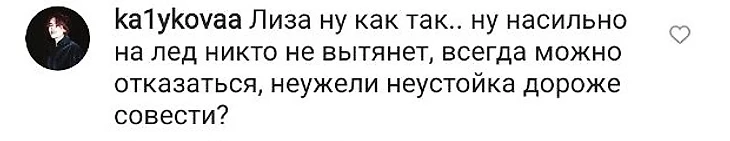 Вот как на пост Туктамышевой отреагировали в комментариях. Некоторые подписчики поддержали Лизу, другие отметили, что она могла не выходить на лед.
