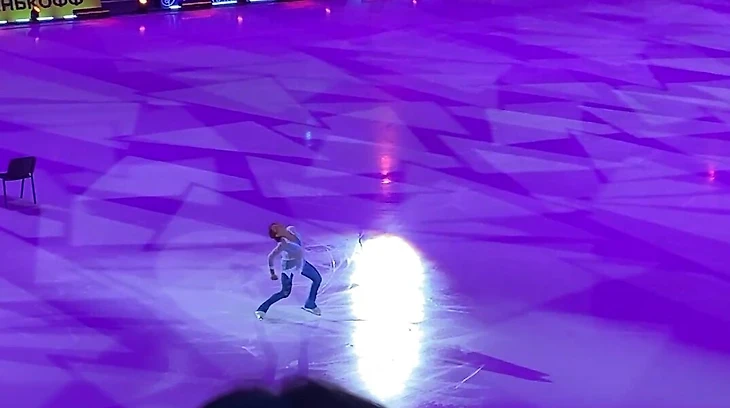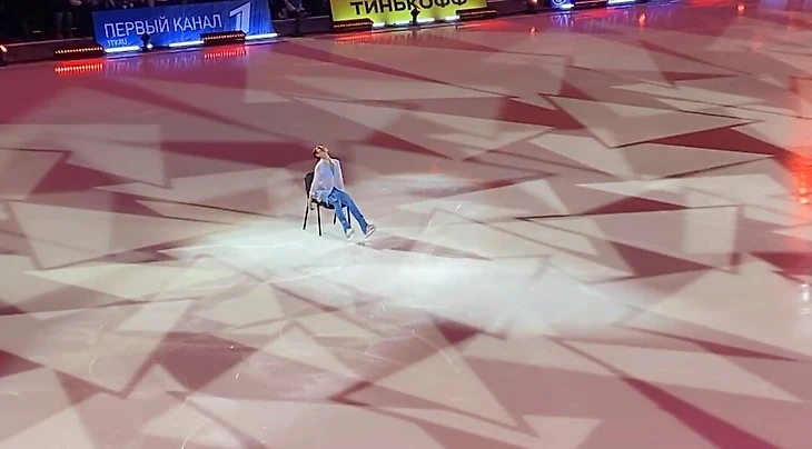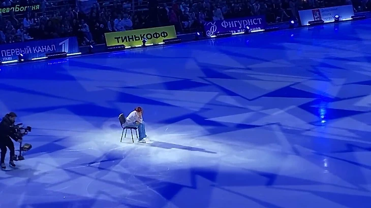 В концовке Трусова вновь оказывается в середине катка на стуле.