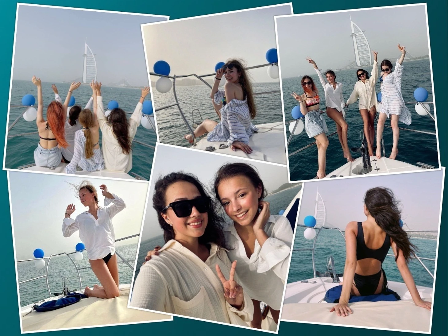 Алина Загитова, Дарья Усачёва и Анна Щербакова с сестрой на отдыхе в Дубае.