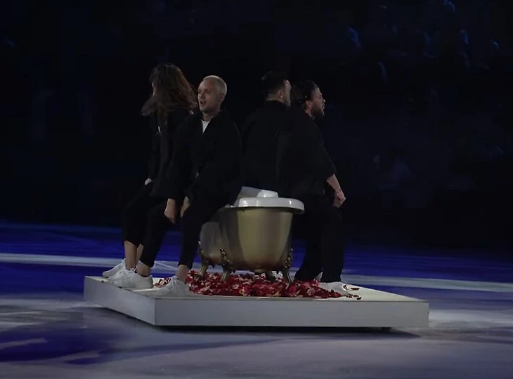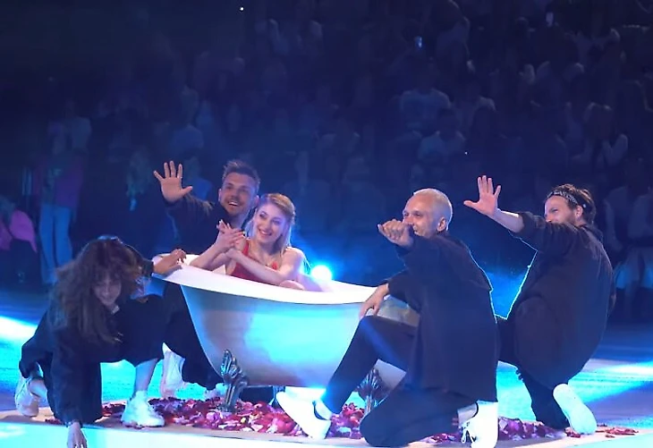 Концерт Косторной под живой вокал Билана: выехала на лед лежа в ванне, а потом зажигала в красном платье