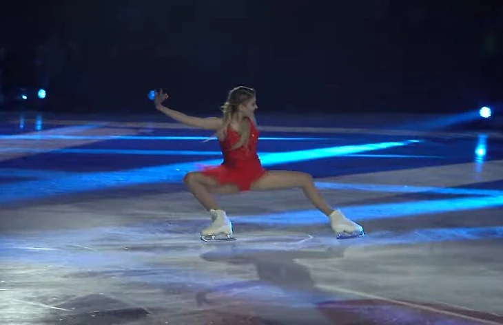 Алена каталась вообще без прыжков, если не считать подскока в один оборот в середине программы.