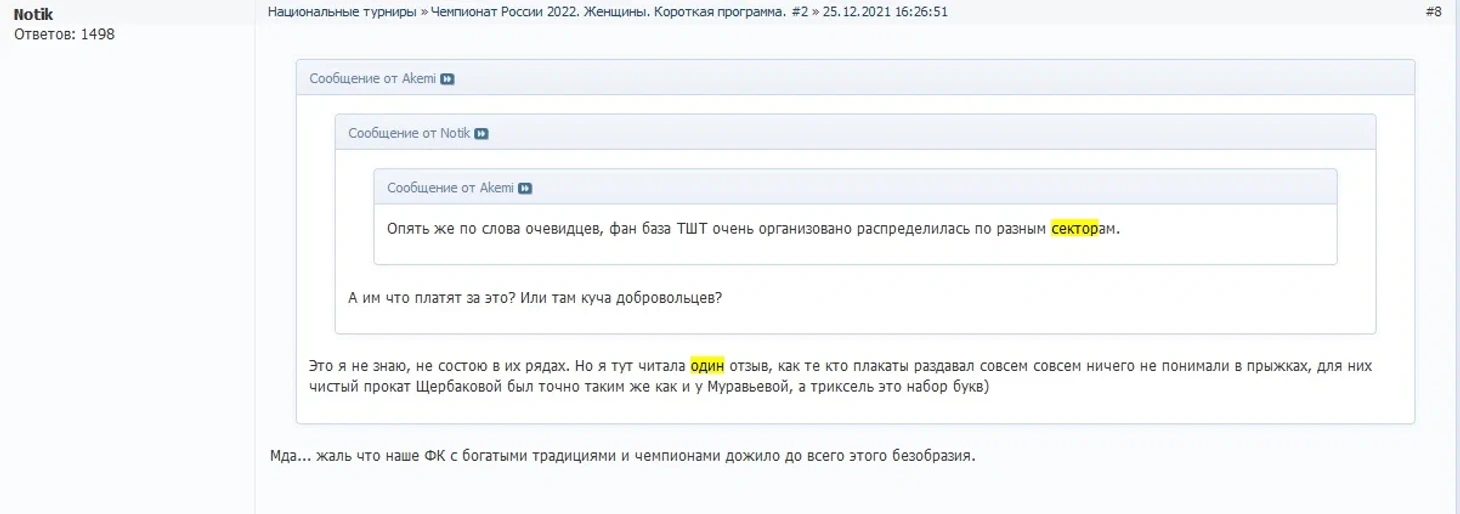 Присутствующие в зале отмечают, что никто не вставал на прокатах Анны Щербаковой, но были некие сектора, которые всячески поднимали зал. Осмелюсь предположить, что те самые сектора со второго скрина – это «Ледокол» и «Фан-сектор», скандально известные поклонники ТШТ.