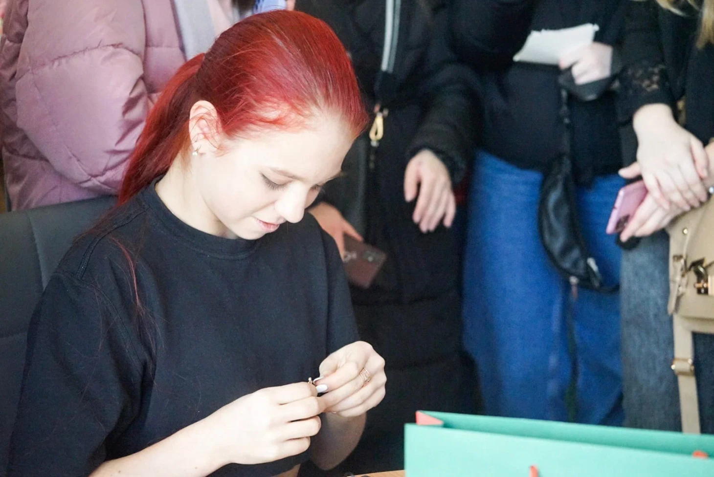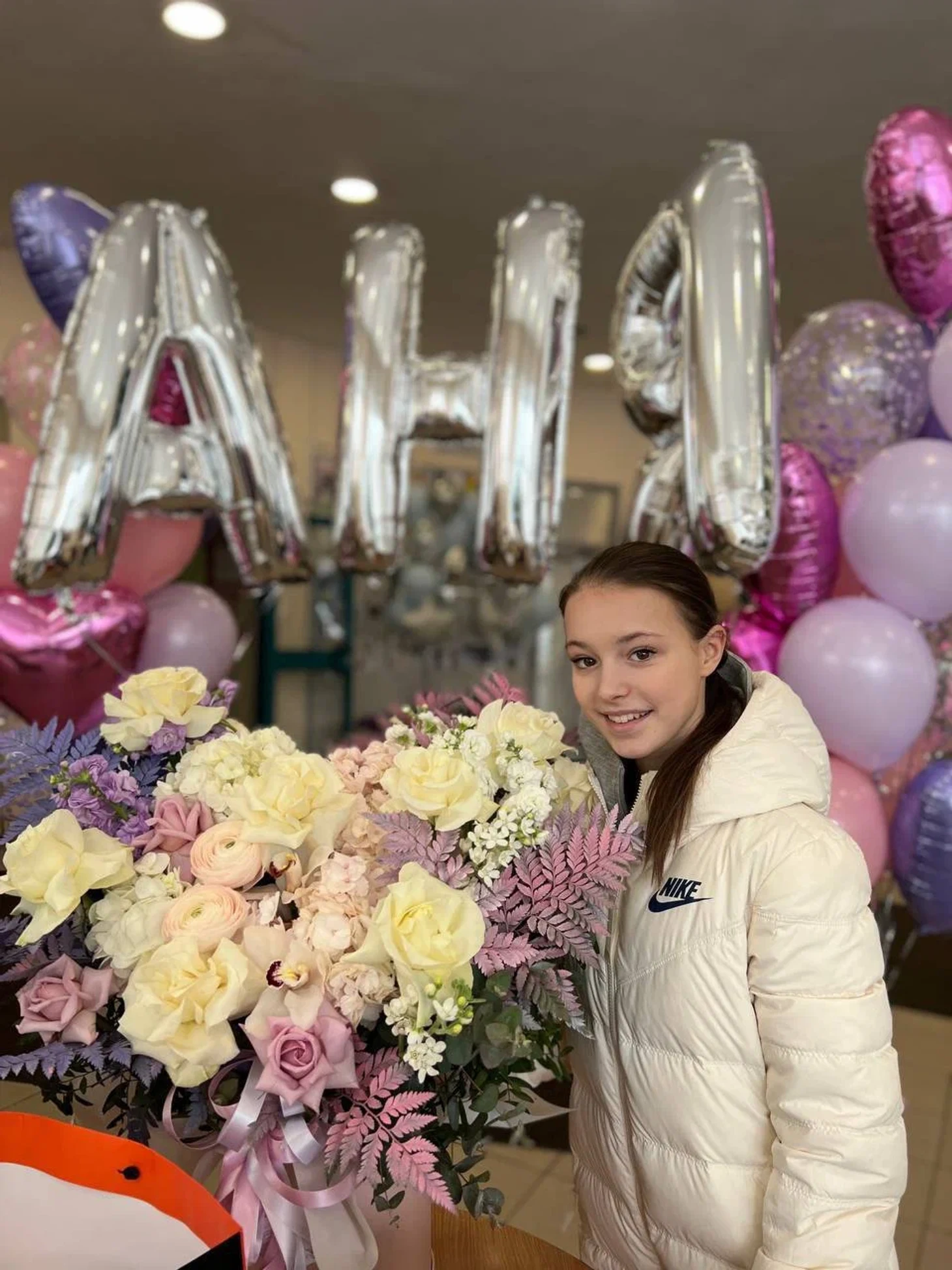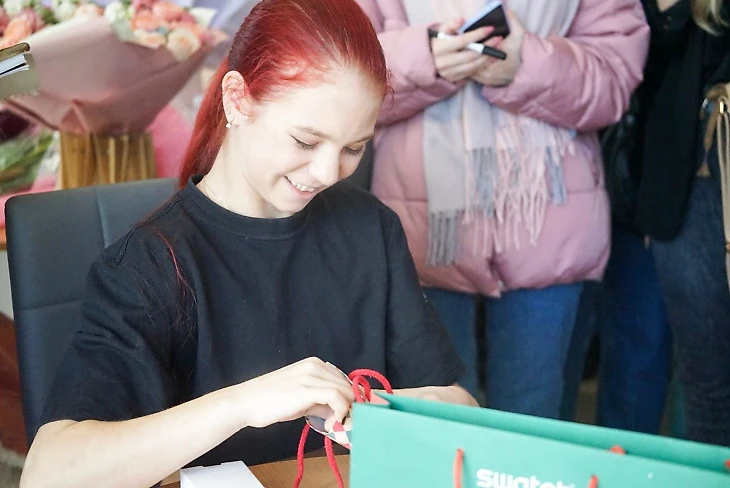 У всех есть фан-группы «Team_имя спортсмена». Одной из задач данных фан-групп является организация встреч фанатов, подарки к праздникам и т.д. Когда дарят подарки, то дарители попадают в кадр, как, например, на фотографии со встречи с Александрой Трусовой, где в кадры с Сашей и подарками попадают люди.