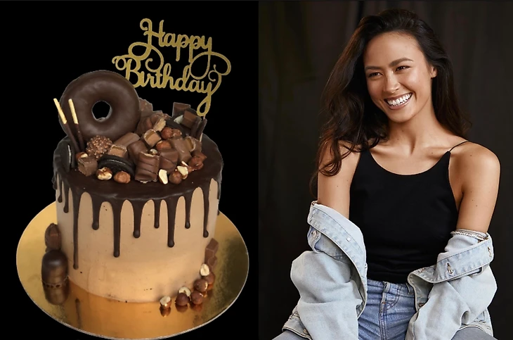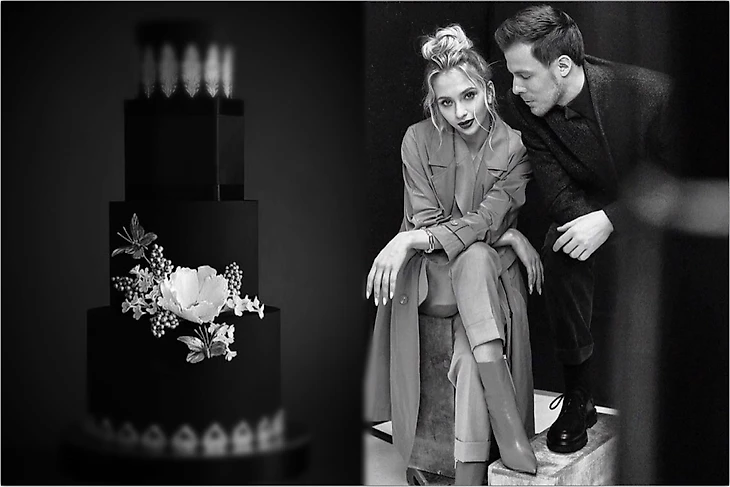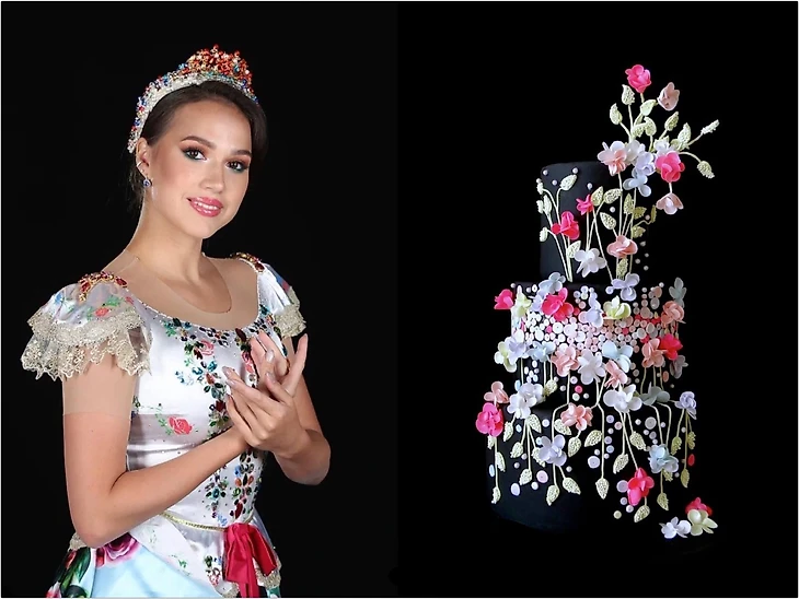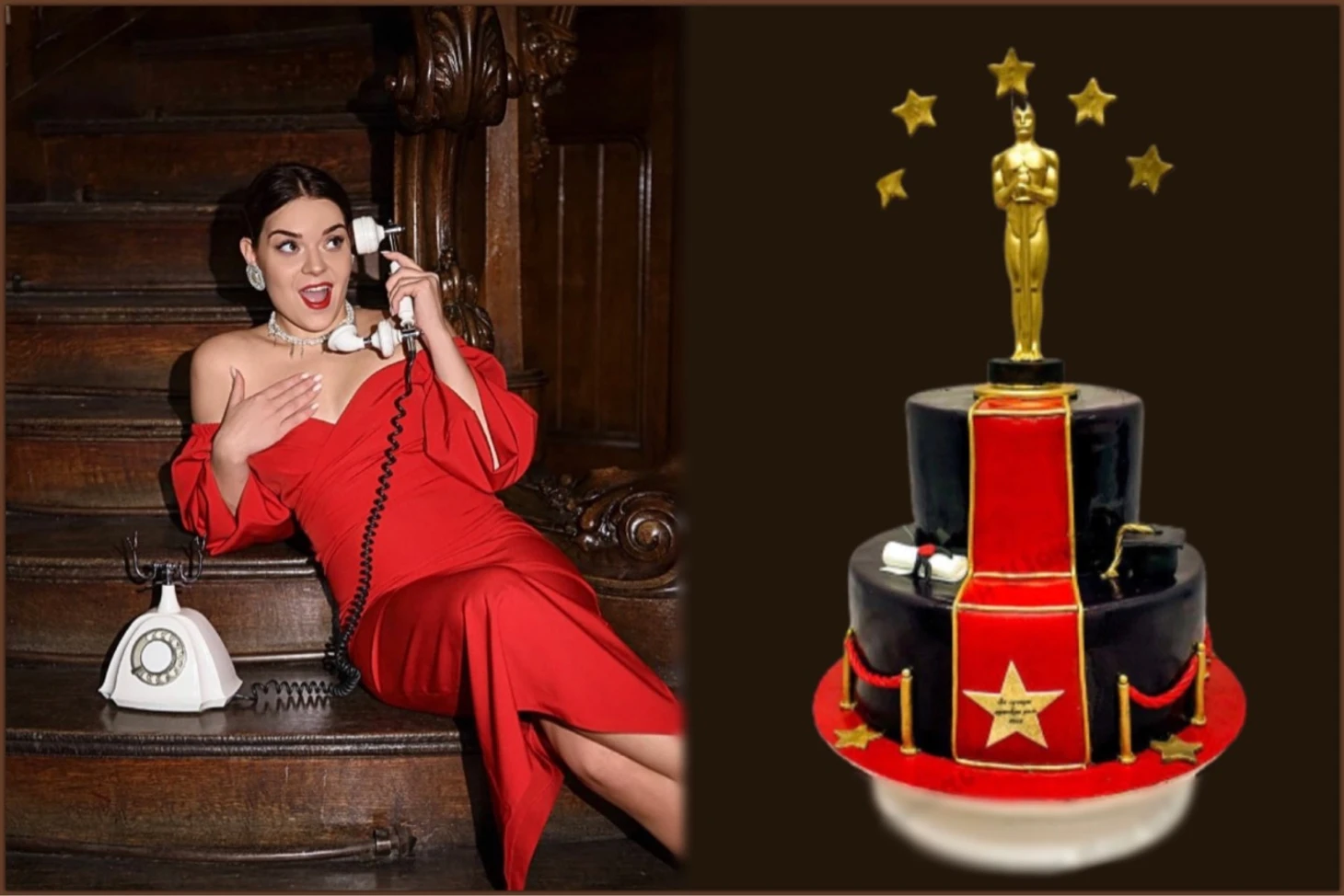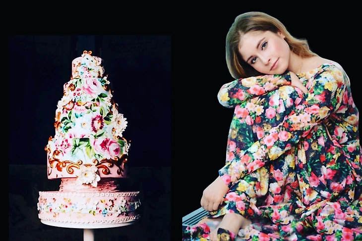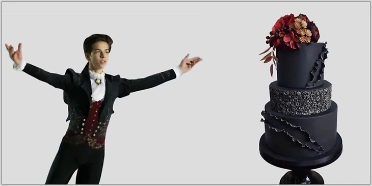 С Аленой самый свежий тортик. Вчера только приготовила. 😉 К такому костюму классический торт никак не подошёл бы, вот как у Самарина. Пришлось потрудиться немного, но кто ищет тот найдёт 😊