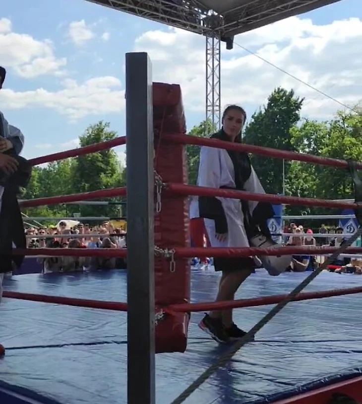 Загитова уже месяц в боксе – проводит тренировки, изучает удары. И вот впервые вышла на ринг перед зрителями, чтобы поспарринговаться с двукратным олимпийским чемпионом.