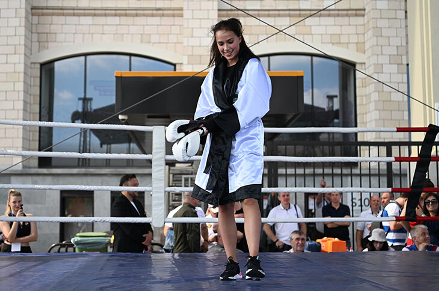 Алина Загитова провела тот самый спарринг/тренировку с легендой бокса Олегом Саитовым – этого шоу с неделою ждали в «Лужниках» в рамках Дня Московского спорта.