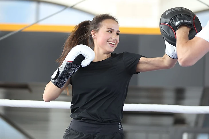 🗣 «Девушка приятная, координированная. Когда человек занимается профессионально спортом, требующим координации, он и в любом другом виде спорта сможет навыки перехватить. Поэтому все нормально, занимается полтора месяца — все достаточно неплохо. Но чтобы научиться боксу, нужен спарринг-партнер, его ощущение. Без контакта ты не сможешь.