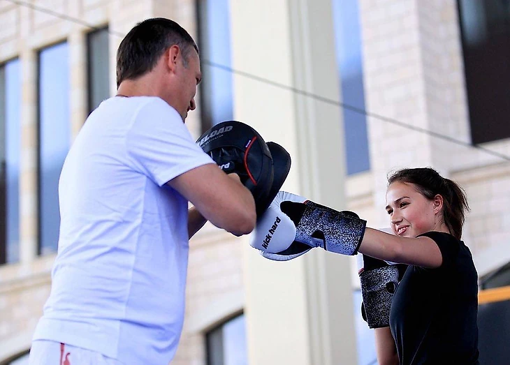 Итак, сегодня, 25 июня в 14:30 Алина Загитова приняла участие в мастер-классе с двукратным олимпийским чемпионом по боксу Олегом Саитовым!