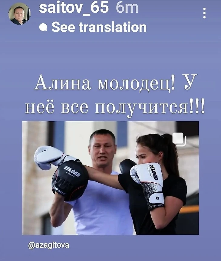 И в данный момент, Алина опять на боксе судя по её "кружочку" в телеграмм https://telesco.pe/azagitova_official/405е