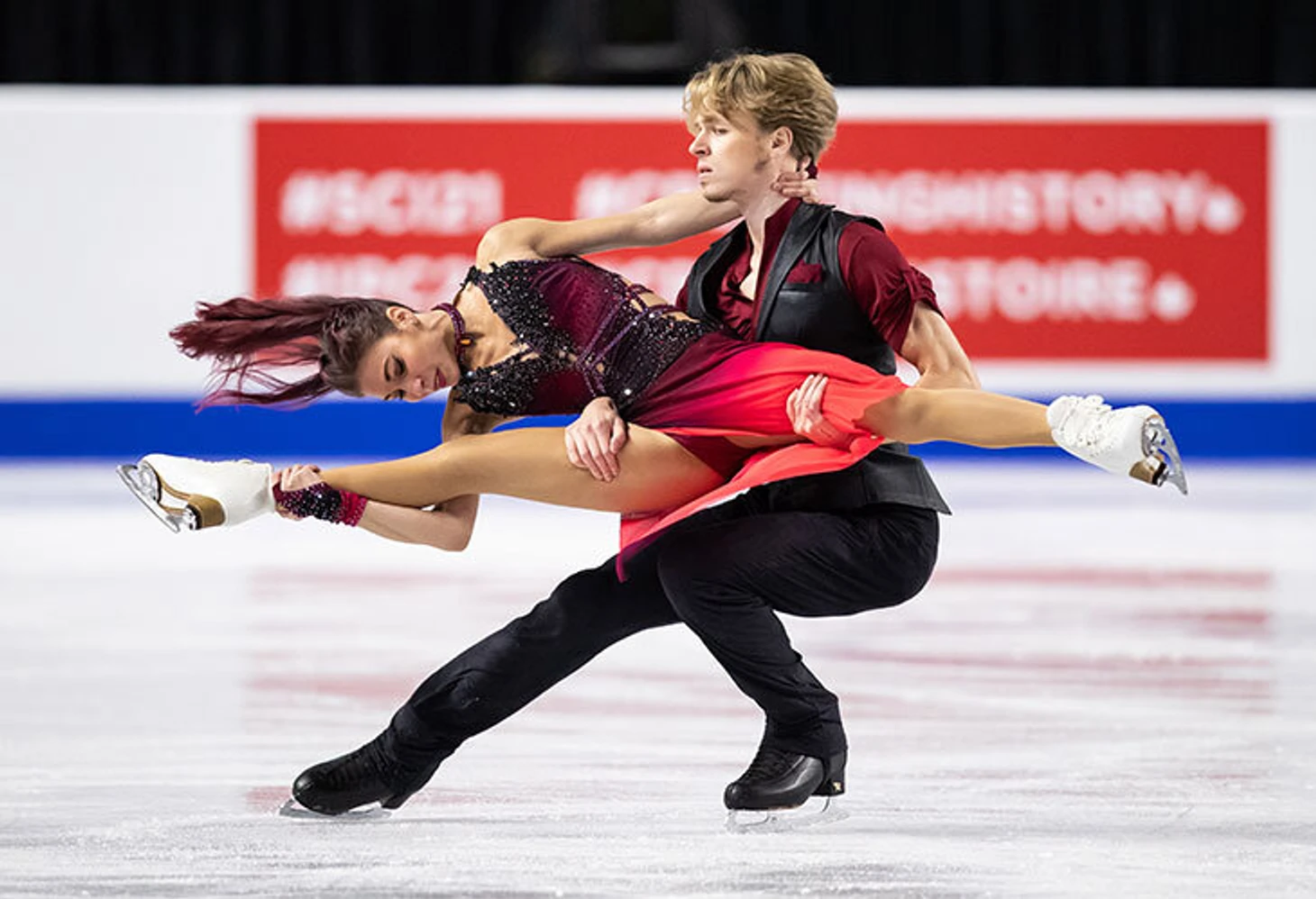 Вслед за лидерами еще один дуэт из Монреаля – Кристина Каррейра / Энтони Пономаренко (на фото ниже). Если вам показалась знакомой фамилия партнера, то вы не ошиблись: родители Энтони – олимпийские чемпионы Марина Климова и Сергей Пономаренко.
