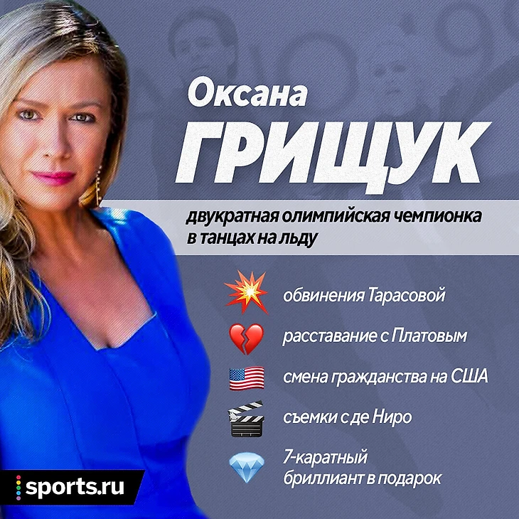 Фото: facebook.com/Oksana Grishuk; instagram.com/skylergrace_grishuk; Gettyimages.ru/Lutz Bongarts/Bongarts, Mike Powell/Allsport, Clive Brunskill/Allsport, Jamie Squire/Allsport, Anton Want, Jed Jacobsohn, Tom Hauck; РИА Новости/Владимир Родионов; globallookpress.com/Anton Belitsky/Russian Look