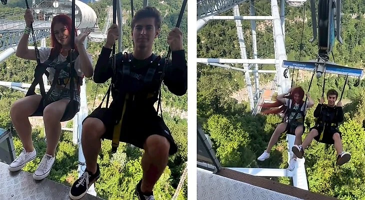Трусова вместе с Марком Кондратюком тоже испытали эту супертарзанку. Захватывающе!