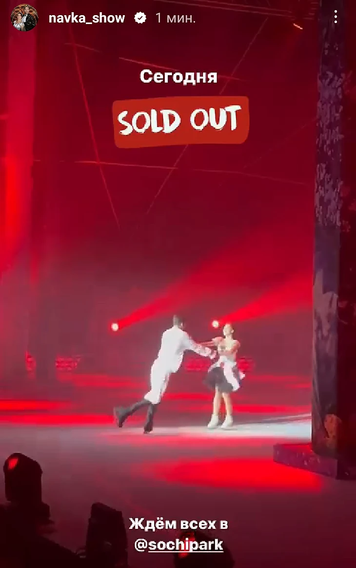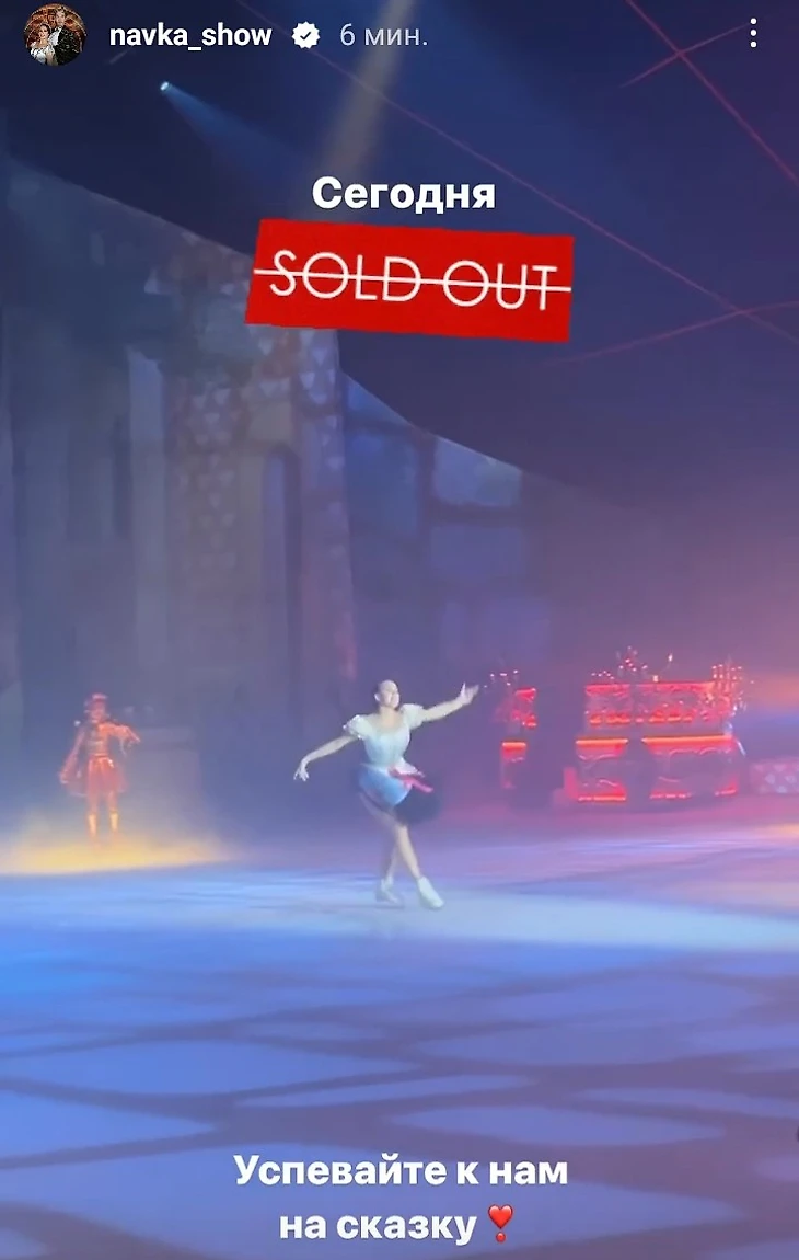 Билеты раскупаются практически под ноль, либо близко к этому, о чем свидетельствуют сообщения аккаунта "Навка-шоу" о "sold out", что означает "все билеты проданы".