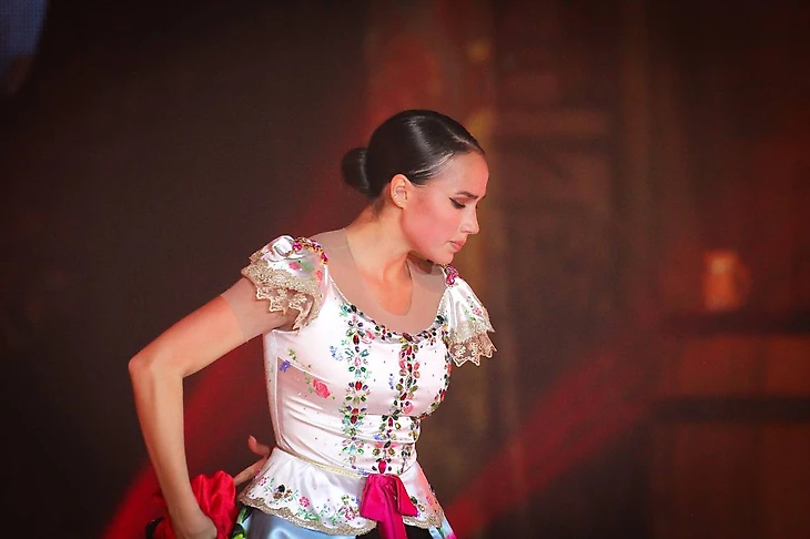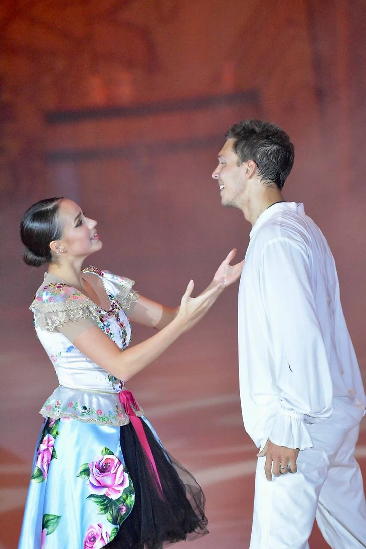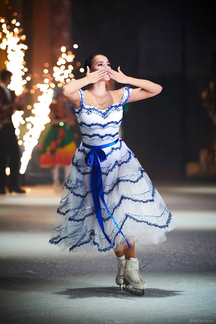 Артисткой кино стать не хотели бы? На самом деле я задумывалась об этом, и мне поступала пара предложений. К сожалению, мне не понравился сюжет, поэтому я отказалась от этих ролей. Но если мне предложат классную роль, которая будет подходить мне, и мне понравится сюжет, с радостью соглашусь. Как считаете, из каких составляющих получается успешное и популярное шоу, которое все хотят посмотреть? На примере шоу «Аленький цветочек» очевидно — в первую очередь это актеры-спортсмены, которые там участвуют. Во-вторых, спецэффекты и музыка. Затем, безусловно, декорации. И конечно, общая атмосфера, которая царит в команде, — это неотъемлемая часть успеха проекта. Если команда сплочена, то и шоу будет здоровским. Как думаете, что особенного в «Аленьком цветочке» и чем это ледовое шоу привлекает зрителей? Это красивая волшебная сказка, которая доносит зрителям вечные истины, предоставляя возможность прочувствовать весь спектр эмоций: добро побеждает зло, а любовь важнее всего на свете, яркая и с интересным сюжетом. Зрители – и дети, и взрослые — знают, какой сюжет их ждет, и им он интересен, а когда они смотрят шоу, их улыбки и аплодисменты говорят сами за себя. Как вы восстанавливаетесь после сложных соревнований и выступлений? Лежу в кровати и включаю какой-нибудь сериал. Можно еще что-то вкусненькое — мясо или рыбу. Лежать и не вставать.