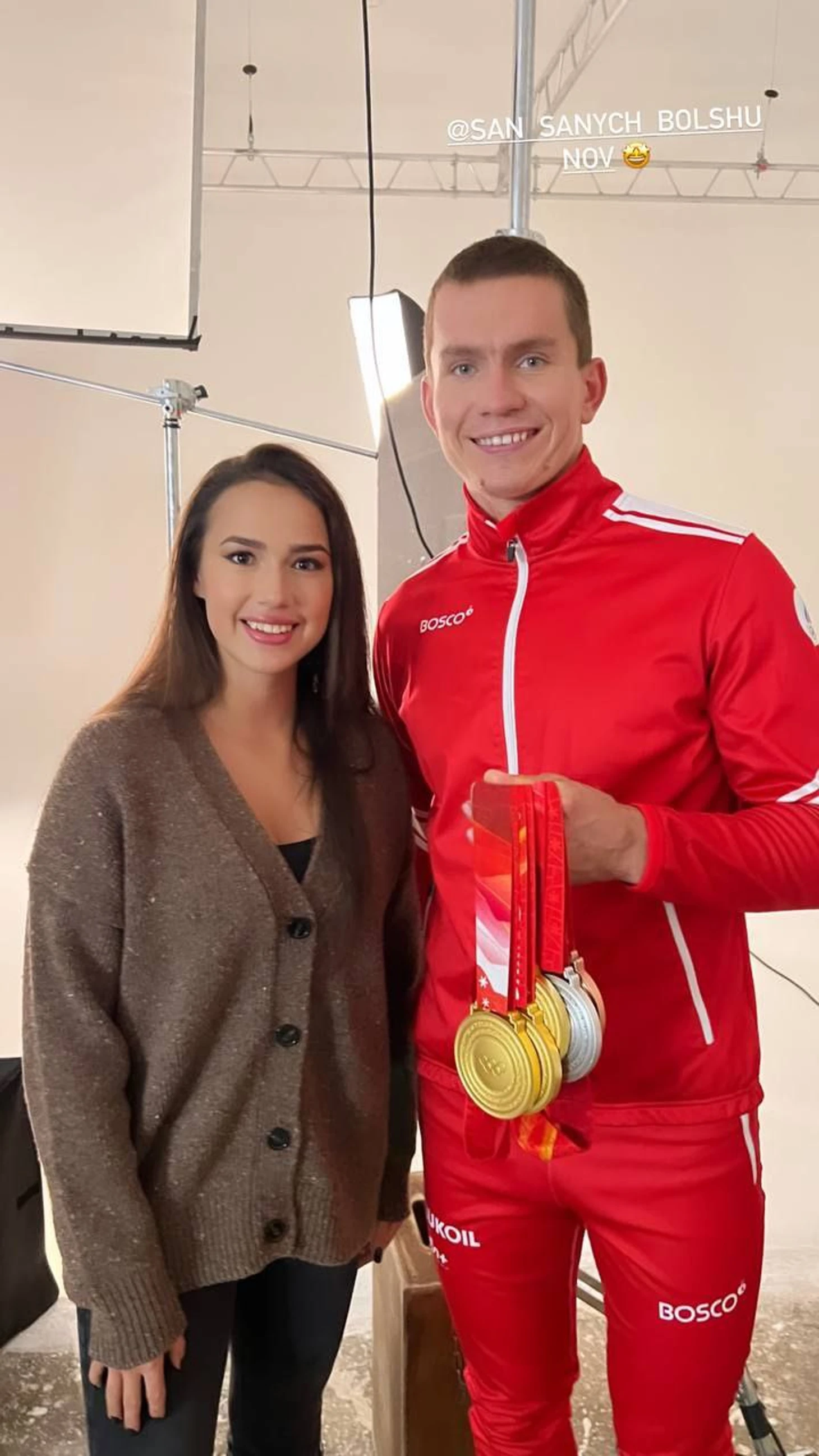 Также, Алина сфотографировалась с Олимпийским чемпионом Александром Большуновым, с которым, по всей вероятности, встретилась так, на съёмках. Приятная фотография. Как кто-то подписал под этим фото в соцсетях Алины - "Королева и Король".