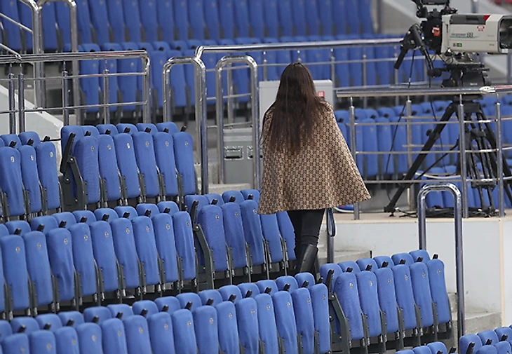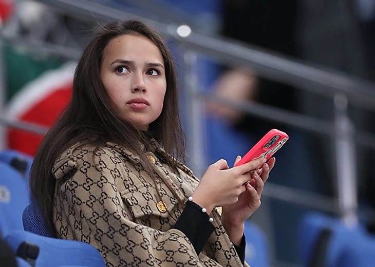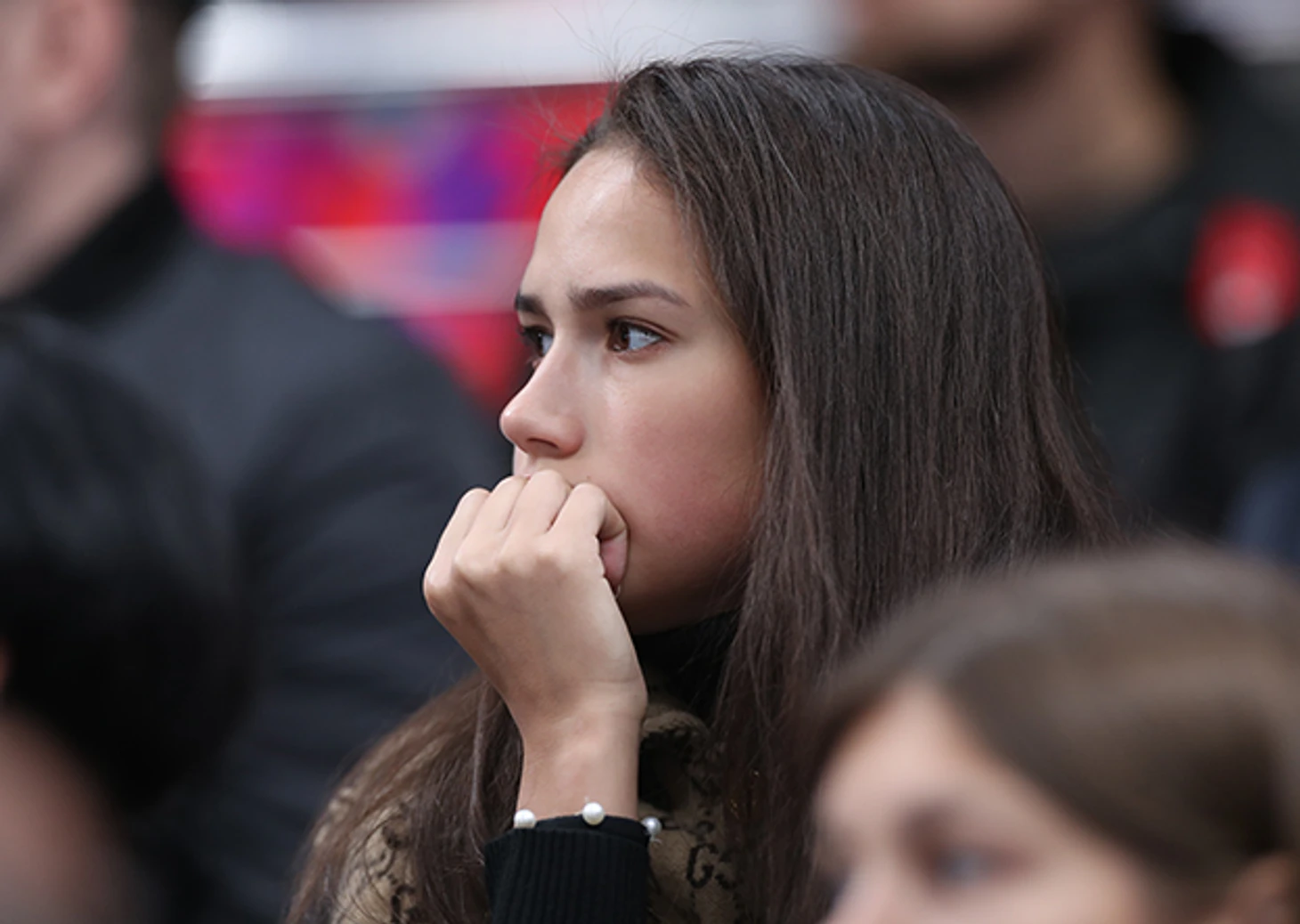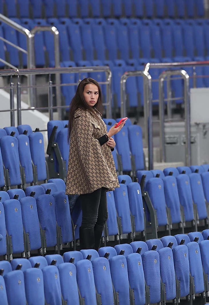 Какой уж тут хоккей, хоккеистов вон как много, а Алина одна — и неповторима в своем очаровании. Едва камера сфокусировалась на прелестном лике звезды мирового фигурного катания, как девушка увидела нацеленный на нее объектив и закрыла лицо руками. А потом отвернулась и вовсе поменяла локацию, уйдя в глубину трибуны — в зону безопасности от фотографов (как ей казалось).