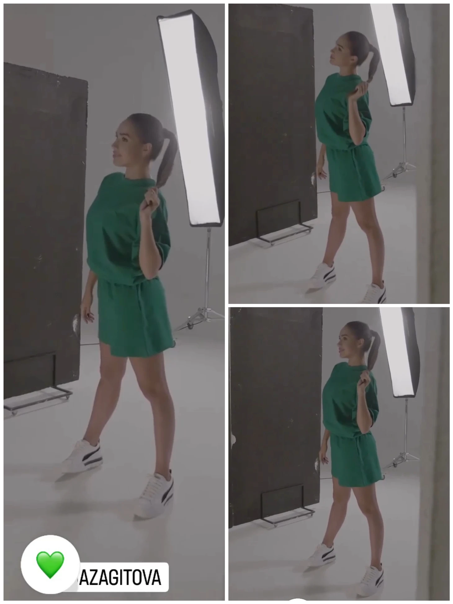 А вчерашние съёмки для Лиги просто восторг! Люблю, когда Алина такая игривая, с искорками на глазах. А это зелёное платье на стройной фигуре Алины смотрится шикарно, великолепно, изумительно!