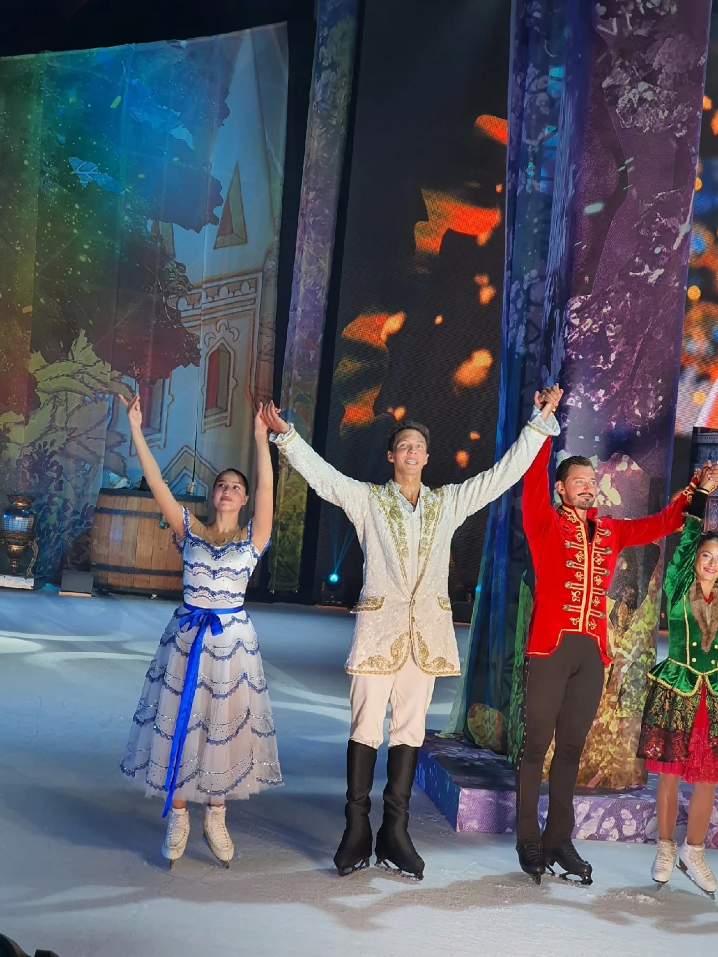 На фото я и Алина Загитова, а ещё Дмитрий Соловьев, он тоже олимпийский чемпион. Алина и Дмитрий исполнители главных ролей в ледовом шоу Татьяны Навки "Аленький цветочек". Шоу мне очень понравилось, было красиво, интересно, феерично...