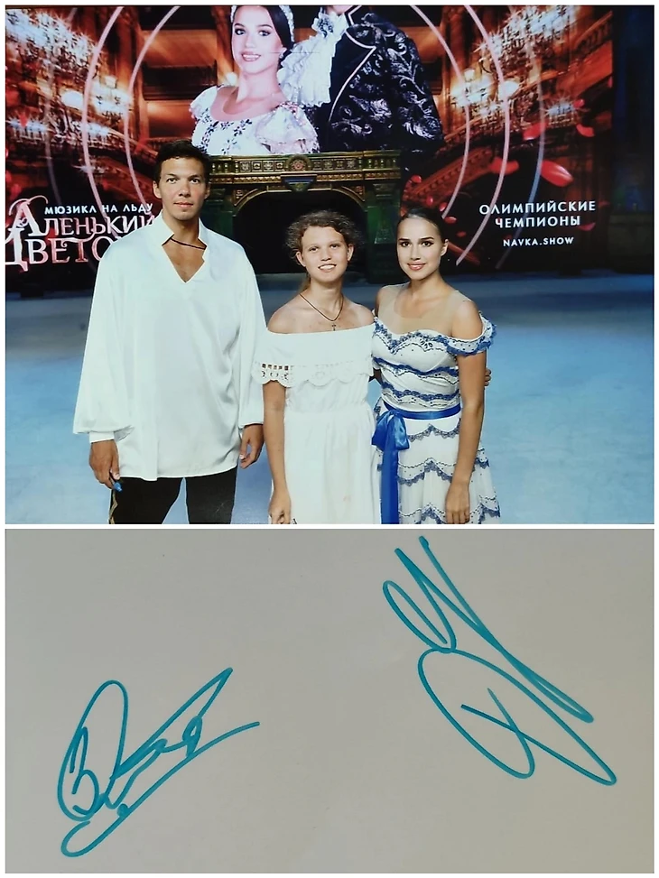 У меня нет любимого певца или актёра, но у меня есть любимая фигуристка ⛸⛸ 💙, с которой я давно хотела встретиться и взять автограф. Моё желание сбылось🤗😌😉