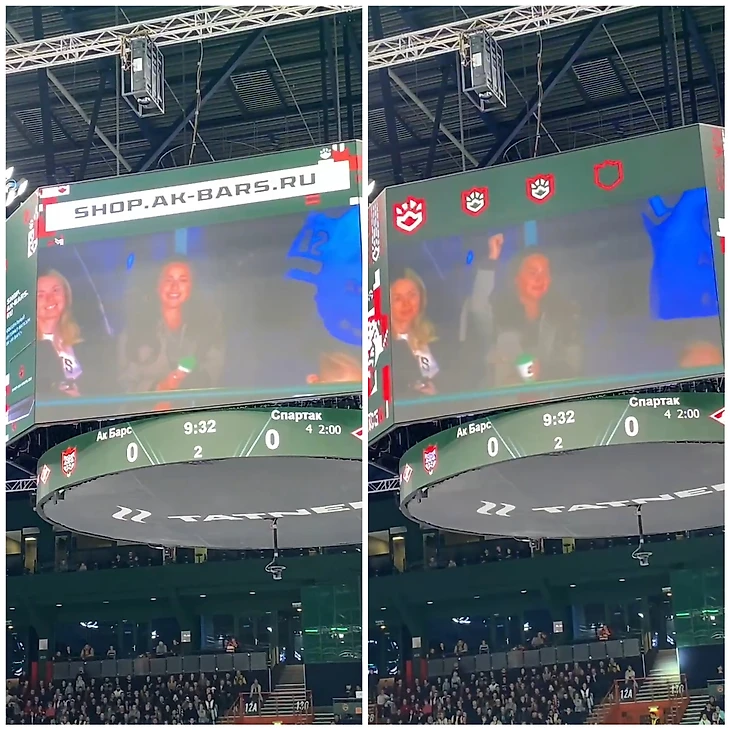 А ещё, Алина Загитова сегодня снова была на хоккейном матче в Казани, и, что примечательно, в этот раз диктор на весь стадион объявил, что "сегодня на трибунах присутствует Легенда ФК, Олимпийская Чемпионка, Алина Загитова", показав Алину в этот момент на большом экране. Жаль, что сюда нельзя вставить кусочек видео, оставлю здесь скрины, как есть.