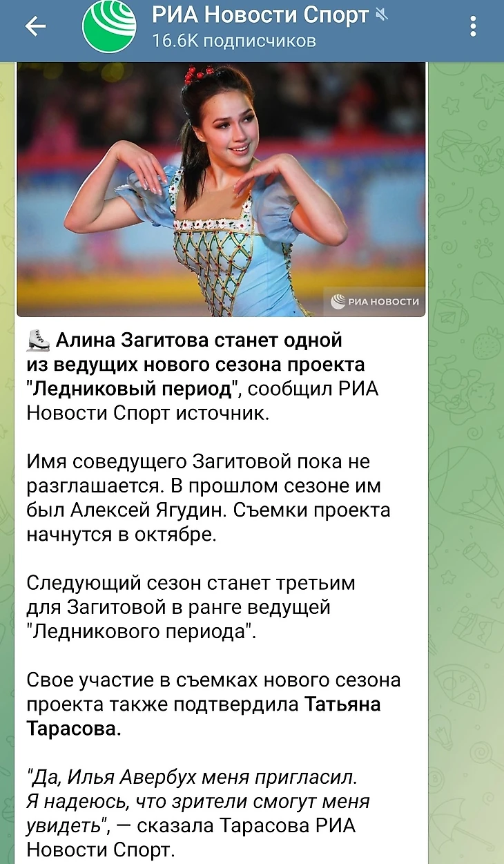 Пост Алины Загитовой https://t.me/azagitova_official/486?single