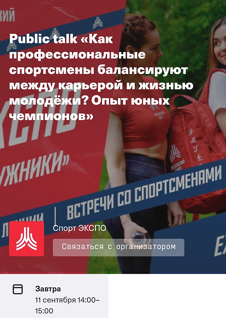 Уважаемые друзья, у нас завтра, кроме уже объявленного мероприятия участием Алины Загитовой от Лиги ставок, планируется ещё одно. Подробности можно узнать по ссылке, а москвичи могут даже попробовать попасть на него https://sport-expo.timepad.ru/event/2165823/