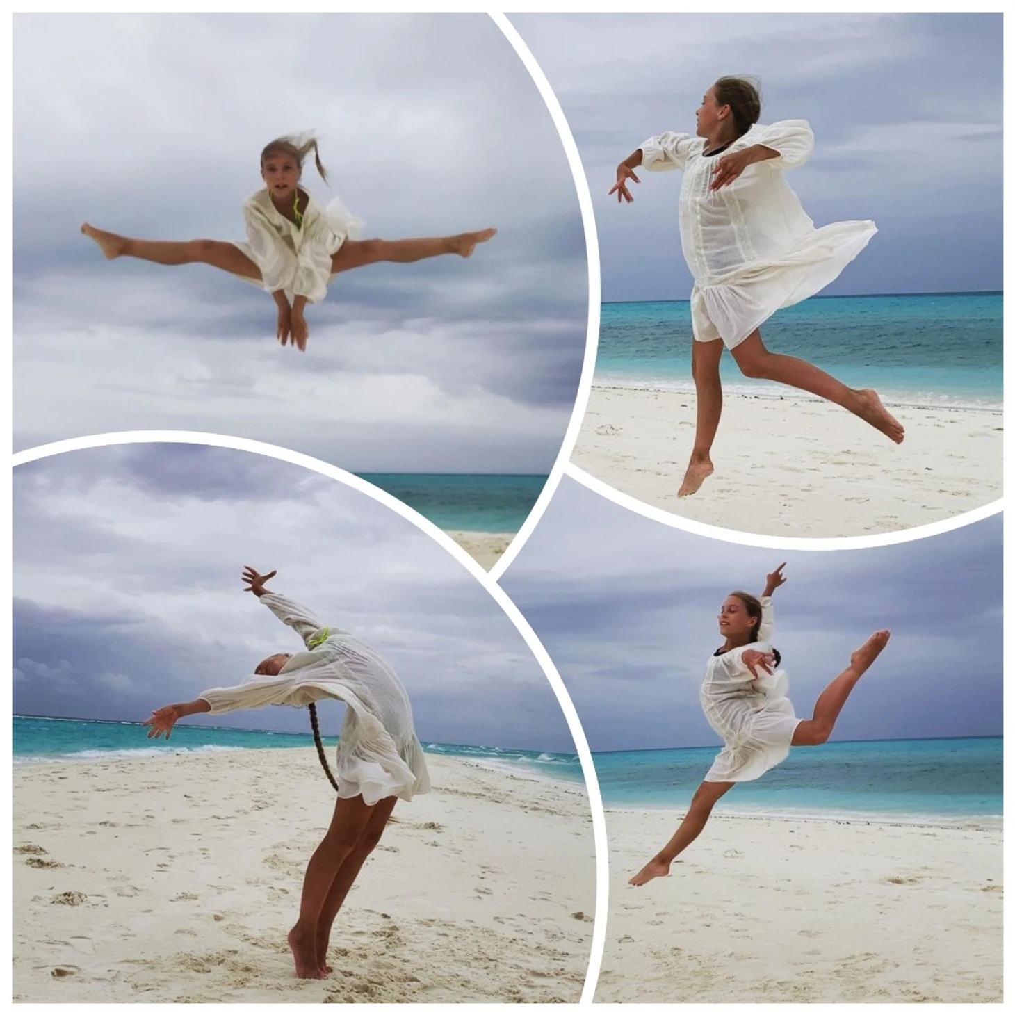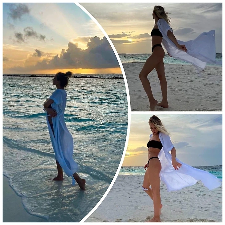 Все очаровательные, отдохнувшие, радостные. Девушки настоящие модели. Софья взлетает выше неба. Водопад волос Саши впечатляет.)