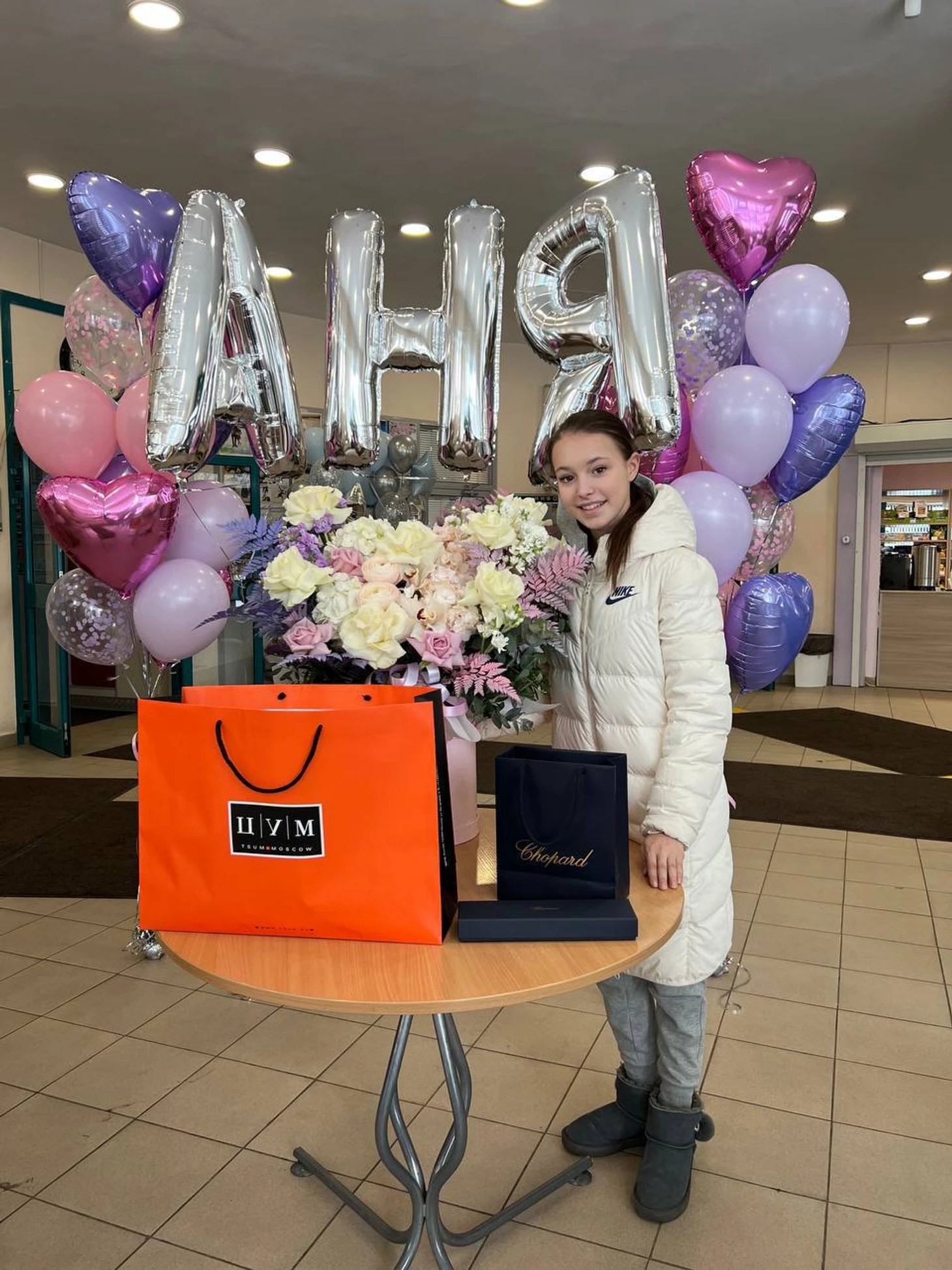 Как и другие наши флагманы, Камила получает от фанатов дорогие подарки: ювелирные украшения, технику, брендовые вещи, а еще море цветов и воздушных шаров. На 16-летие ей вручили браслет Mercury из белого золота и iPhone 13 Pro Max (этот подарок сделали совместно с китайскими фанатами из kvalieva_kbao_cn).