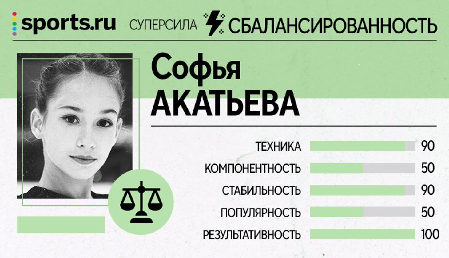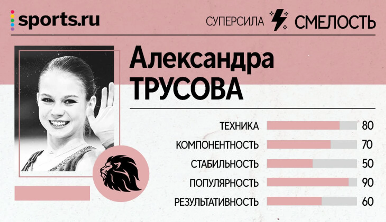 Наконец, бонус – у каждой спортсменки мы определили ее суперсилу. Например, у Косторной это фирменное скольжение, у Туктамышевой – впечатляющий соревновательный опыт, а у Трусовой – смелость, с которой она заявляет сумасшедший контент. Сильные стороны невозможно оценить в баллах, зато они отлично показывают, насколько разные наши одиночницы.