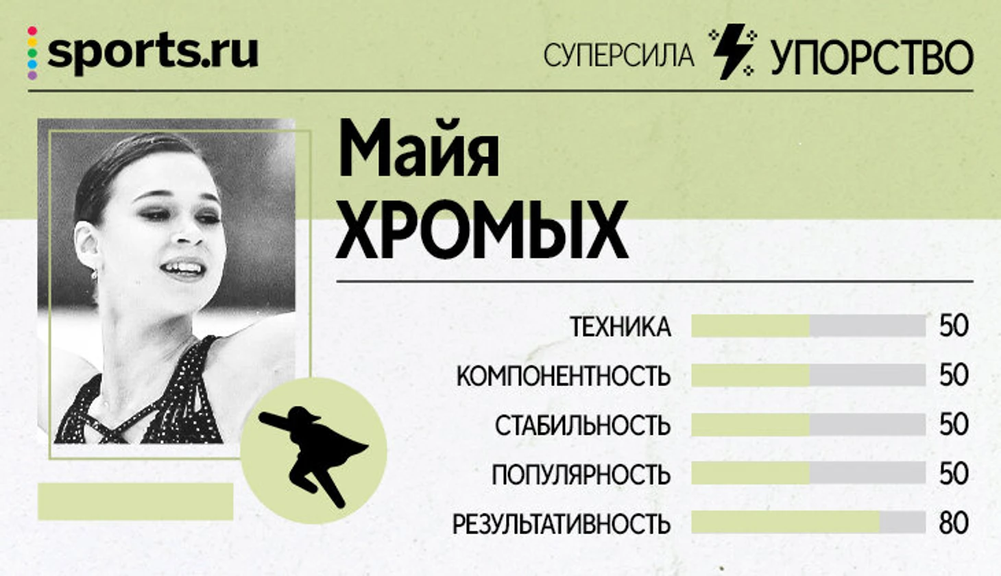 Суперсила Хромых – упорство. Даже собственный рост (точных цифр нет) – приличный для современного катания, базирующегося на запредельной сложности – Майя старается превратить в достоинство: