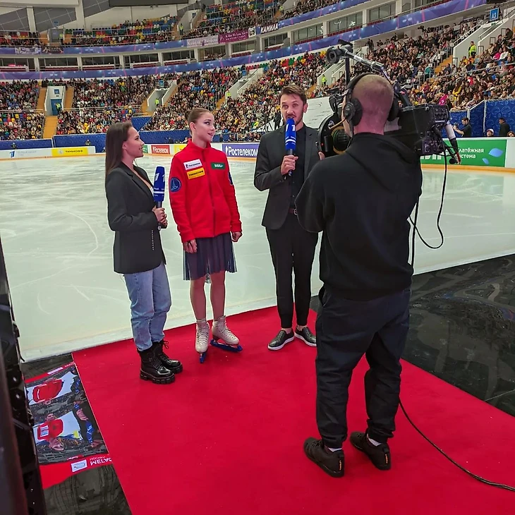 Вчера, 24 сентября, в фигурном катании России официально начался сезон - в ледовом дворце "Мегаспорт" начались контрольные прокаты сборной России по фигурному катанию, прошли короткие программы и ритм-танец. Конечно, Алина показала нам в начале дня, что поехала "смотреть", спросив, будем ли мы смотреть тоже? Однако, позже, мы были приятно (а кто-то и неприятно) удивлены, увидев Алину Загитову с микрофоном в руке рядом со спортсменами. Знаем точно, пообщавшись в чатах с массой людей, что даже те, кто не собирался или не хотел смотреть прокаты, в итоге посмотрели их. Просто потому, что там была Алина. Кто-то радовался, что она там, с удовольствием смотря, как она с позитивом встречает и провожает спортсменов. А кто-то, вооружившись ручкой, блокнотом, калькулятором и ещё бог весть чем, внимательно конспектировал каждое слово и движение нашей Алиночки, совершенно позабыв про катающихся спортсменов, забыв посчитать их контент и перспективы на сезон, как это должно было бы быть.