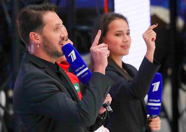 Нарезка из трансляции Первого канала. Интервью после проката девушек.