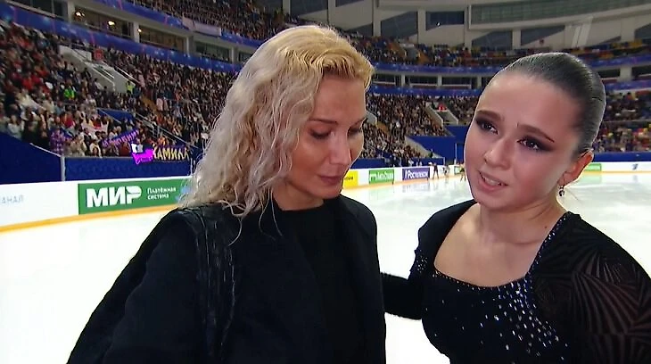 Валиева же плакала и во время интервью. Алина Загитова неловко поддержала: «Камил, я надеюсь, что это слезы только радости и счастья от того, что ты нам показала такой замечательный прокат».