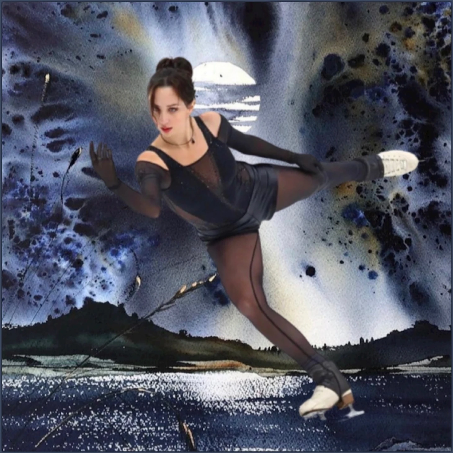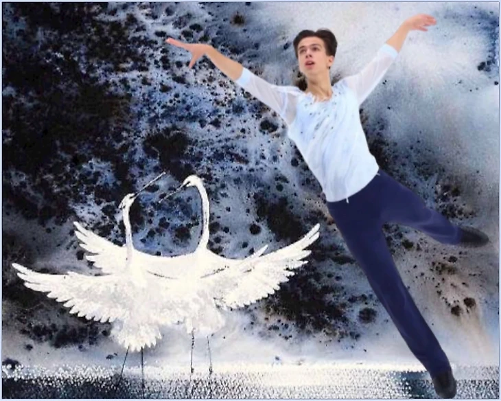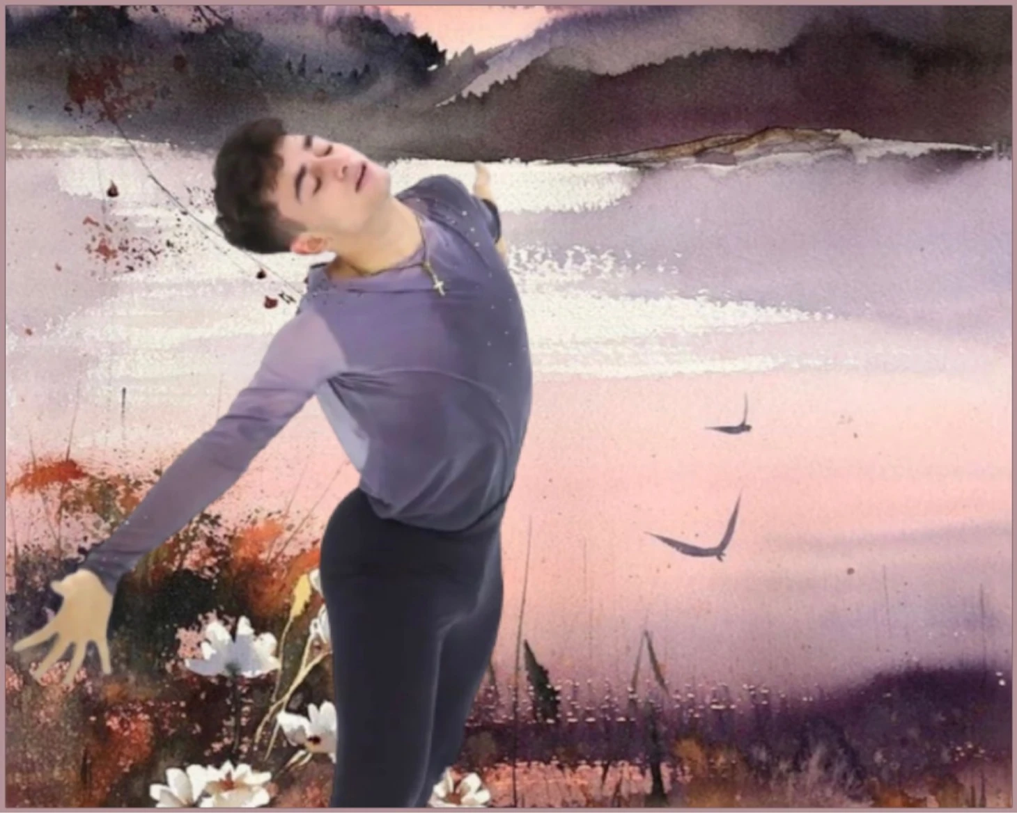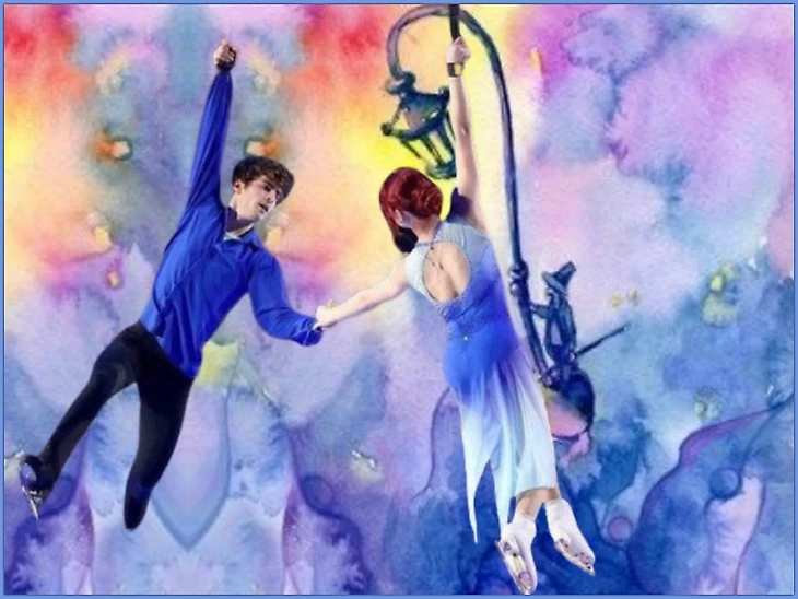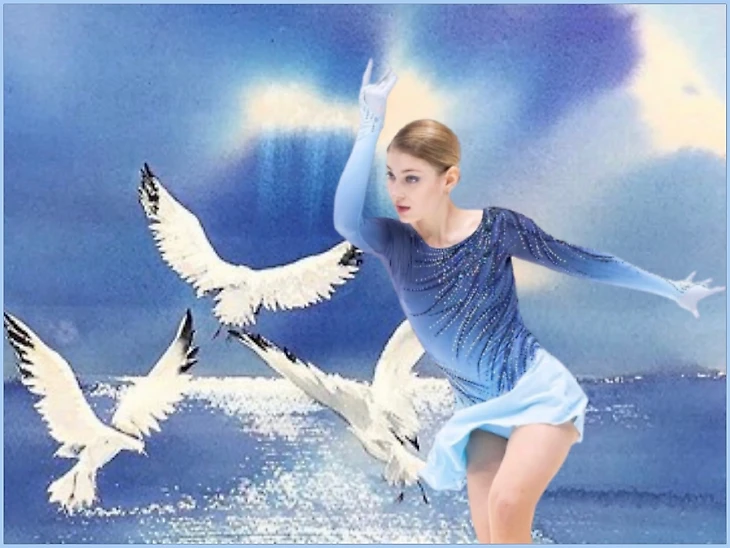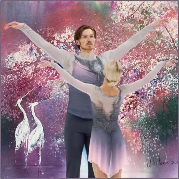 Давайте не будем гадать, а просто погрузимся в созерцание работ фигуристов в сочетании с акварельными картинами художника.