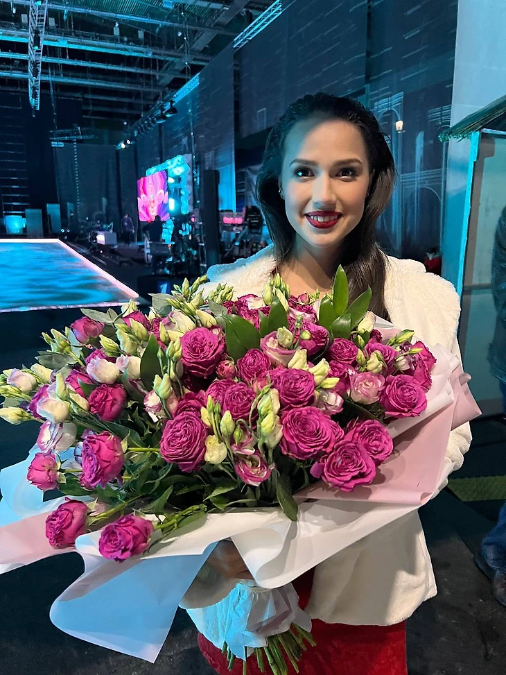 После шоу. Как всегда, с цветами)